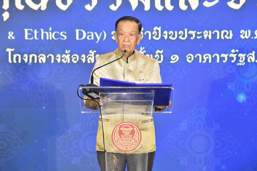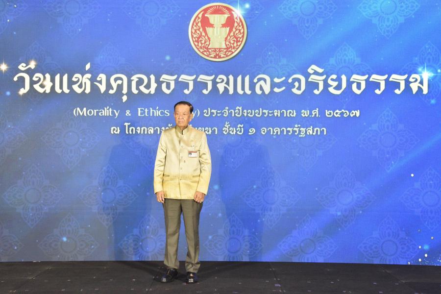 ประธานรัฐสภา กล่าวเปิดกิจกรรม พร้อมกล่าวให้โอวาทใจความตอนหนึ่งว่า รู้สึกเป็นเกียรติและมีความยินดีที่ได้มาเป็นประธานในพิธีมอบรางวัลให้แก่ข้าราชการรัฐสภาผู้มีคุณธรรมและจริยธรรมดีเด่น และสำนักที่มีผลงานด้านการส่งเสริมตามประมวลจริยธรรมข้าราชการรัฐสภา ประจำปีงบประมาณ พ.ศ. 2567 ในวันนี้ สำนักงานใด ๆ ก็ตาม จะมีความเจริญก้าวหน้า ต้องมีบุคลากรที่เป็นคนดี มีคุณธรรมจริยธรรม และมีการประสานงานที่เรียบร้อย ยินดีที่ได้ร่วมปฏิบัติงานกับรัฐสภาที่มีคุณธรรม และจริยธรรม ขอให้รัฐสภาที่องค์กรหลัก ๆ ในประเทศ เป็นองค์กรต้นแบบที่ปฏิบัติงานด้วยความซื่อสัตย์ มีคุณธรรมจริยธรรมให้กับองค์กรอื่น ๆ ขอชื่นชมและขอแสดงความยินดีกับผู้ที่ได้รับรางวัลข้าราชการรัฐสภาผู้มีคุณธรรมและจริยธรรมดีเด่น สำนักที่มีผลงานด้านการส่งเสริมตามประมวลจริยธรรมข้าราชการรัฐสภาและความโปร่งใส และรายการของสถานีวิทยุโทรทัศน์รัฐสภาที่ได้รับรางวัล ในวันนี้