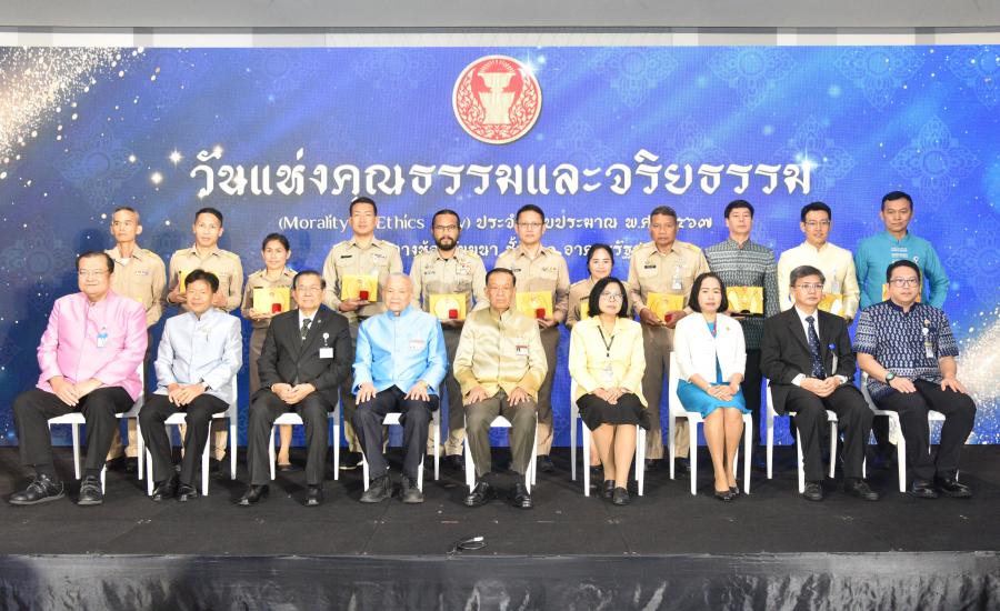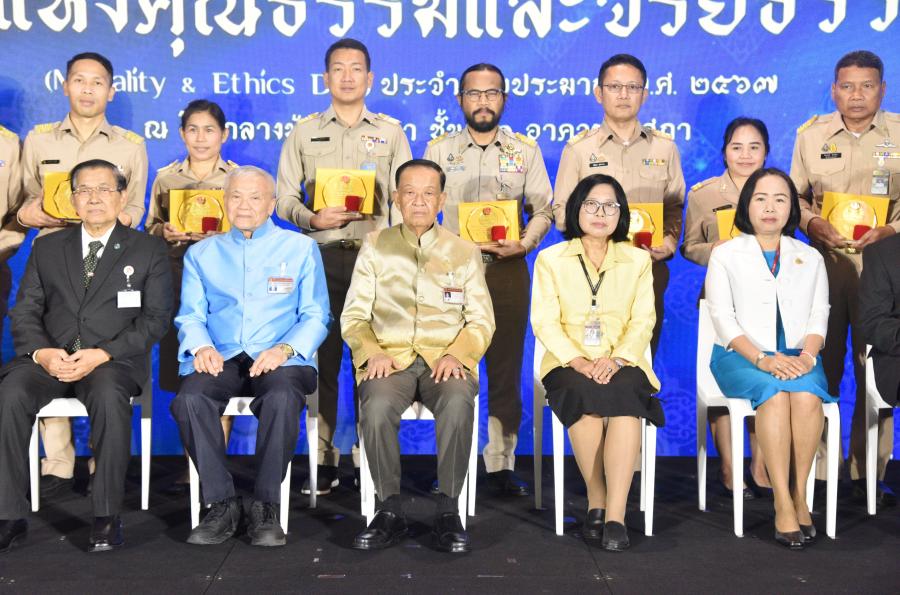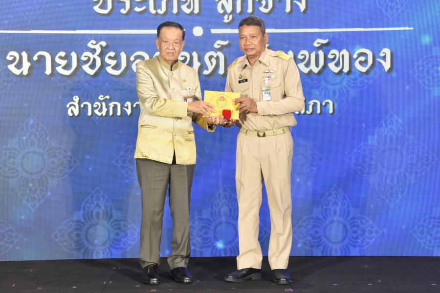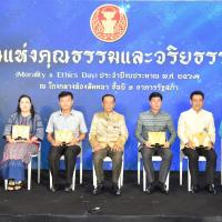 ต่อมา ประธานรัฐสภา มอบเข็มเชิดชูเกียรติ โล่ยกย่องประกาศเกียรติคุณและเกียรติบัตรให้แก่ บุคลากร และสำนักที่มีคุณธรรมและจริยธรรมดีเด่นของสำนักงานเลขาธิการวุฒิสภา โดย น.ส.นภาภรณ์ ใจสัจจะ เลขาธิการวุฒิสภา มอบหมายให้ นายเจษฎา ชำนาญป่า ผู้อำนวยการสำนักพัฒนาทรัพยากรบุคคล สำนักงานเลขาธิการวุฒิสภา อ่านรายชื่อบุคลากรผู้ได้รับเข็มเชิดชูเกียรติ โล่ยกย่องประกาศเกียรติคุณและเกียรติบัตรให้แก่ผู้มีคุณธรรมและจริยธรรมดีเด่นของสำนักงานเลขาธิการวุฒิสภา จำนวน 4 ราย และสำนักที่มีผลงานด้านการส่งเสริมตามประมวลจริยธรรมข้าราชการรัฐสภาและความโปร่งใส จำนวน 3 รางวัล ด้วยกัน