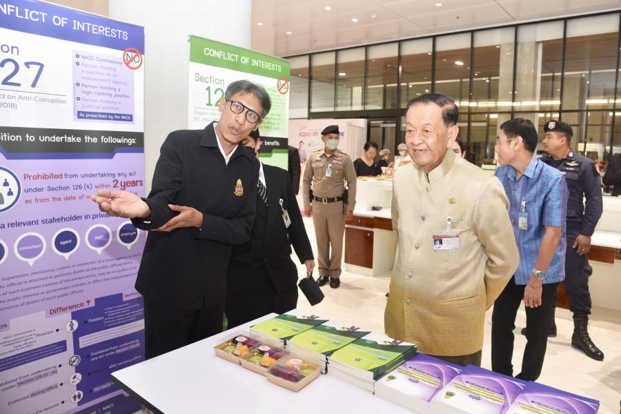 วันศุกร์ที่ 13 กันยายน 2567 ณ โถงกลางห้องประชุมสัมมนา ชั้น B1 อาคารรัฐสภา นายวันมูหะมัดนอร์ มะทา ประธานรัฐสภา ได้เยี่ยมชมนิทรรศการด้านจริยธรรมของสำนักต่าง ๆ ที่ได้รับรางวัลทั้งของสำนักงานเลขาธิการสภาผู้แทนราษฎรและสำนักงานเลขาธิการวุฒิสภา รวมทั้งบูทของรัฐสภาสามารถทั้งนี้ โครงการดังกล่าวจัดโดย สำนักพัฒนาบุคลากร สำนักงานเลขาธิการสภาผู้แทนราษฎร ร่วมกับสำนักพัฒนาทรัพยากรบุคคล สำนักงานเลขาธิการวุฒิสภา มีวัตถุประสงค์เพื่อสร้างแรงจูงใจให้กับบุคลากรของส่วนราชการสังกัดรัฐสภาในการปฏิบัติตามประมวลจริยธรรมข้าราชการรัฐสภา พร้อมทั้งยกย่องข้าราชการ พนักงานราชการ และลูกจ้างที่ปฏิบัติตามประมวลจริยธรรมข้าราชการรัฐสภา รวมถึงหน่วยงานที่มีผลงานด้านการส่งเสริมตามประมวลจริยธรรมข้าราชการรัฐสภาและความโปร่งใส และแลกเปลี่ยนเรียนรู้ด้านการส่งเสริมคุณธรรมจริยธรรมและการปฏิบัติตามประมวลจริยธรรมข้าราชการรัฐสภาให้แก่บุคลากรเพื่อนำมาปรับใช้ในการปฏิบัติงานให้มีประสิทธิภาพมากขึ้น สร้างเครือข่ายทางด้านคุณธรรมจริยธรรม ปลูกฝังและส่งเสริมจริยธรรมให้แก่ผู้บริหารและข้าราชการรัฐสภาสามัญ โดยพิธีมอบรางวัลดังกล่าว ได้ทำการเผยแพร่ผ่านระบบอินทราเน็ตของสำนักงานเลขาธิการสภาผู้แทนราษฎรด้วย