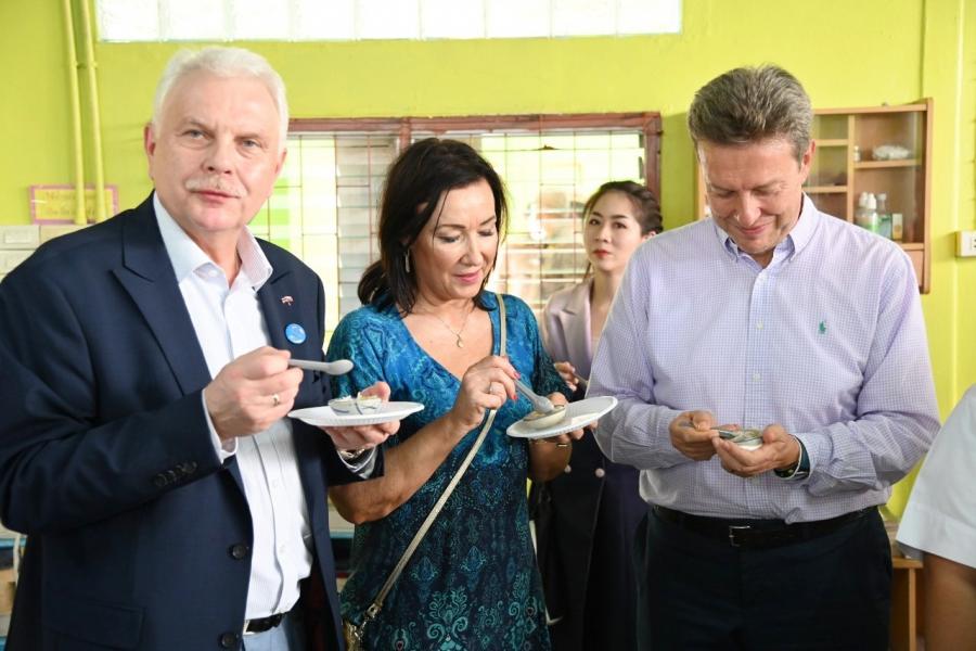 ประธานกลุ่มมิตรภาพสมาชิกรัฐสภาไทย-โปแลนด์ เยี่ยมชมโรงเรียนยานุส คอร์ซัคแห่งเอเชียอาคเนย์ ในระหว่างการรับรองคณะกลุ่มมิตรภาพสมาชิกรัฐสภาโปแลนด์ - ไทย