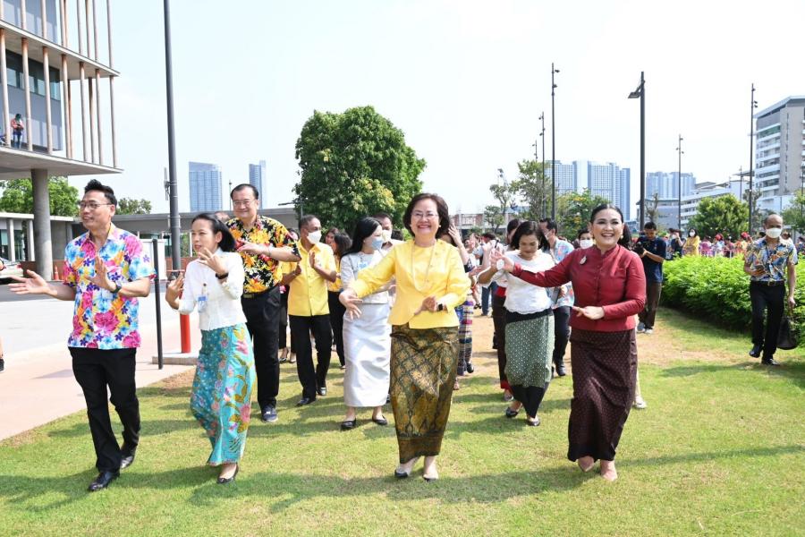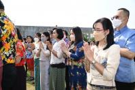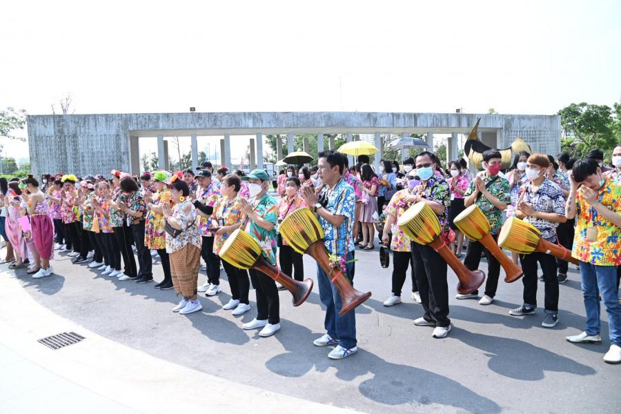 จากนั้น เลขาธิการสภาผู้แทนราษฎร พร้อมด้วย ผู้บริหาร ข้าราชการ พนักงานราชการ ลูกจ้างของสำนักงานเลขาธิการสภาผู้แทนราษฎร และผู้เข้าร่วมพิธี ร่วมรำกลองยาวมายังศาลาแก้วเพื่อประกอบพิธีสงฆ์