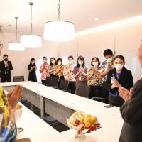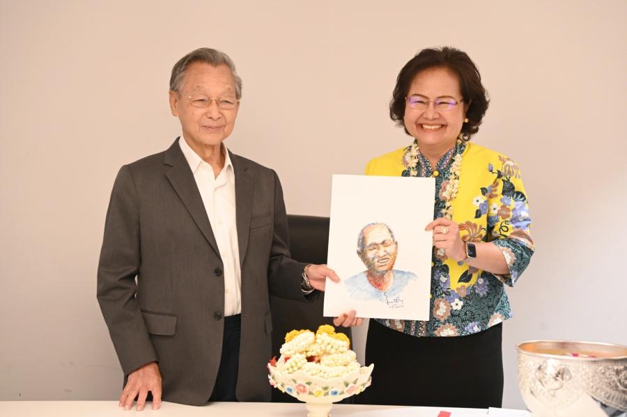 โอกาสนี้ นายชวน หลีกภัย อดีตประธานรัฐสภา กล่าวอวยพรว่า ในโอกาสวันขึ้นปีใหม่ไทย ขอให้เป็นปีที่ประเสริฐสำหรับทุกคน และขอให้ทุกคนมีสุขภาพพลานามัยสมบูรณ์แข็งแรงขอบคุณตลอดระยะเวลา 4 ปีที่ได้ร่วมงานกันมา ถือเป็นช่วงเวลาที่ดีสำหรับพวกเราทุกคน การที่มีสภาอยู่ได้ 4 ปีต่อเนื่องถือว่าเป็นโอกาสที่ดีของบ้านเมือง และขอให้ทุกคนประสบความสำเร็จ พร้อมกันนี้ ยังได้มอบภาพสเก็ตช์คุณปู่ศิริ เพ็ชรเจริญ เพื่อเป็นที่ระลึกอายุวัฒนะครบ 100 ปี ถือเป็นบุคคลที่มีสุขภาพร่างกายแข็งแรงและอายุยืนยาว ยังความปลื้มใจแก่เลขาธิการสภาผู้แทนราษฎรเป็นอย่างมาก