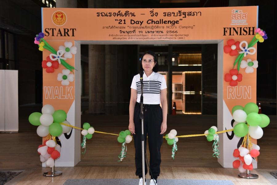 น.ส.กัลยรัชต์ ขาวสำอางค์ รองเลขาธิการสภาผู้แทนราษฎร เป็นประธานในพิธีเปิดการรณรงค์เดิน วิ่งรอบรัฐสภา 21 day challenge ภายใต้กิจกรรม การอบรมเชิงปฏิบัติการ NCD's Camping โครงการรัฐสภาร่วมใจรวมพลังสร้างสุข งบประมาณปี 2566