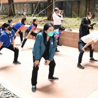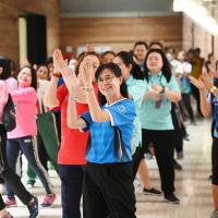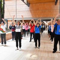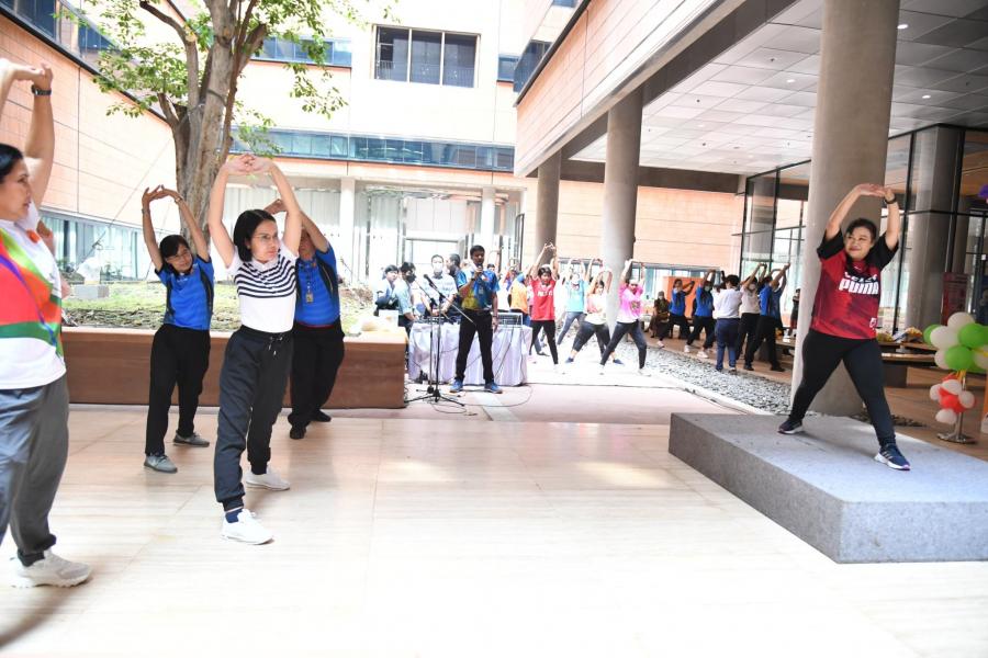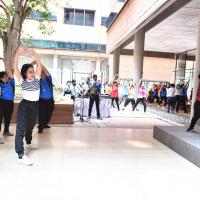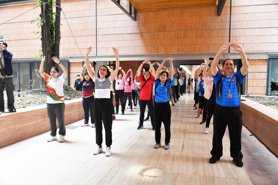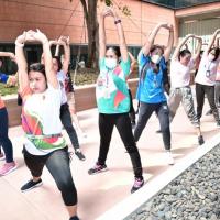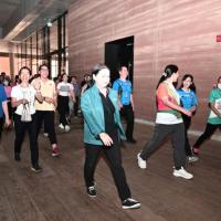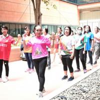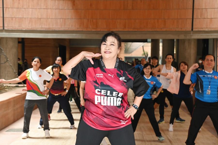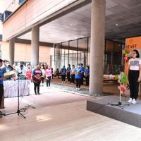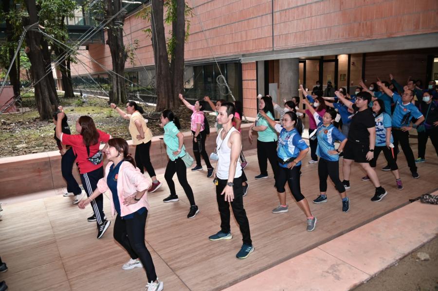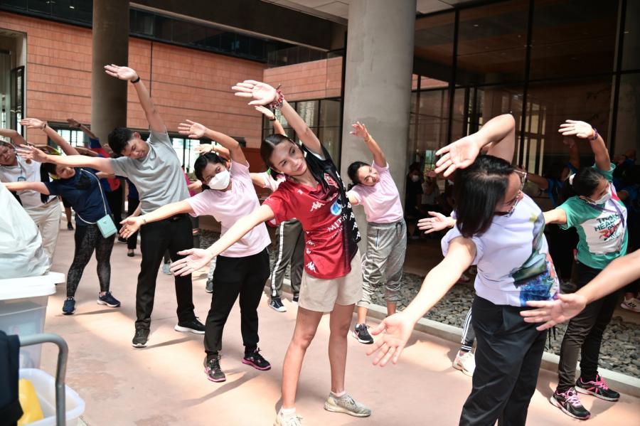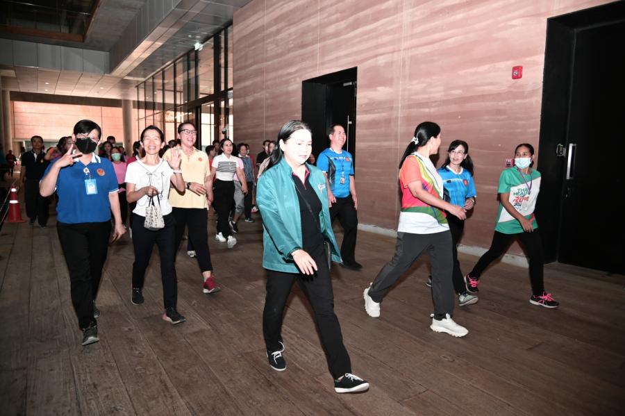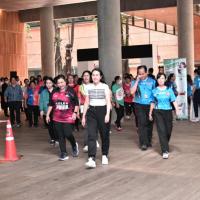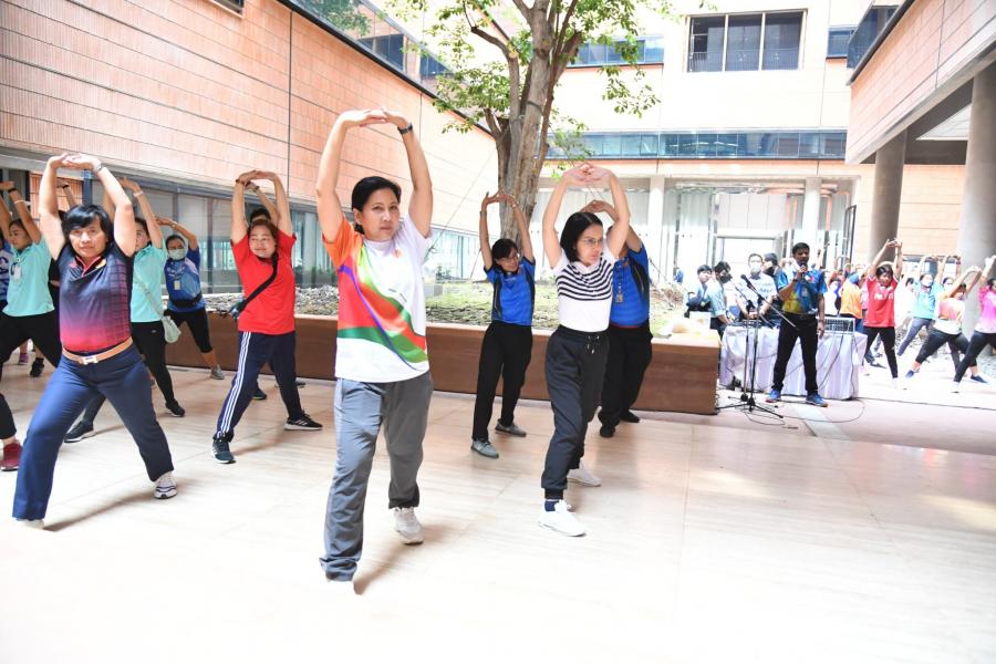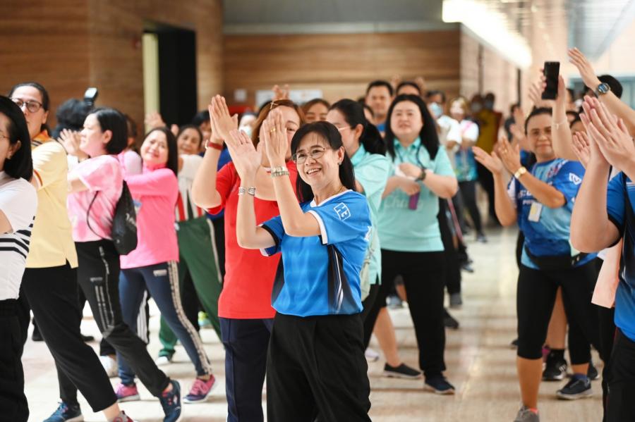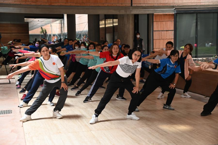 จากนั้น เป็นกิจกรรมการวอร์มอัพร่างกาย ก่อนการเดิน วิ่งรอบสระมรกต นำโดย นางฑิฆัมพร กาญจโนภาศ ผู้อำนวยการสำนักประชาสัมพันธ์ ต่อจากนั้น น.ส.กัลยรัชต์ ขาวสำอางค์ นำเดิน - วิ่ง รอบสระมรกต 3 รอบ เพื่อเป็นการรณรงค์ เดิน - วิ่ง อันจะเป็นการส่งเสริมให้บุคลากรมีสุขภาพที่ดีและแข็งแรง