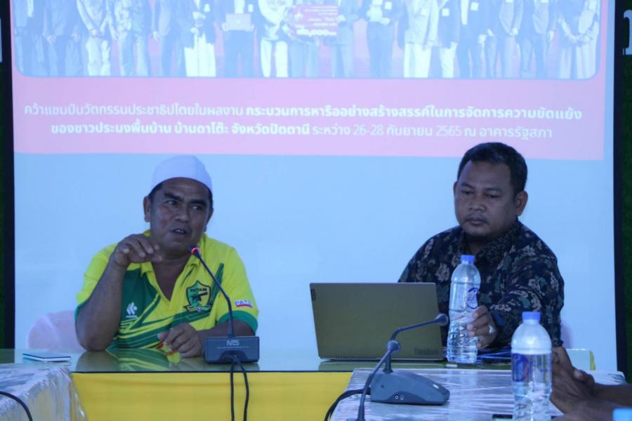 คณะกรรมการจัดประกวดนวัตกรรมเพื่อการพัฒนาประชาธิปไตย ประจำปี 2566 ได้ลงพื้นที่ติดตามและถอดบทเรียนผลงาน กระบวนการหารืออย่างสร้างสรรค์ในการจัดการความขัดแย้งของชาวประมงพื้นบ้านดาโต๊ะ จากทีม สภาประชาสังคมชายแดนใต้ จังหวัดปัตตานี