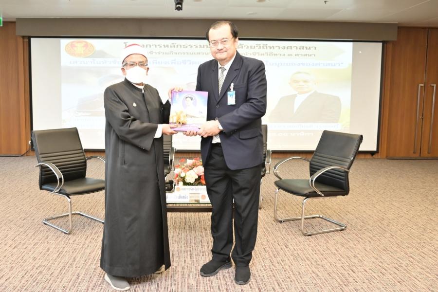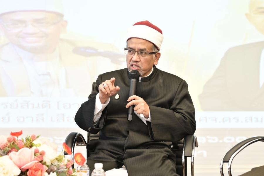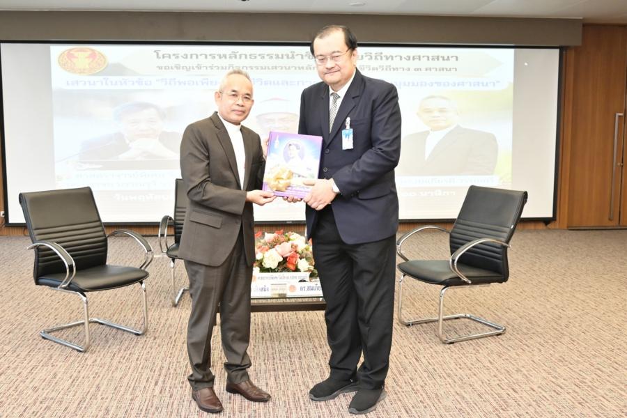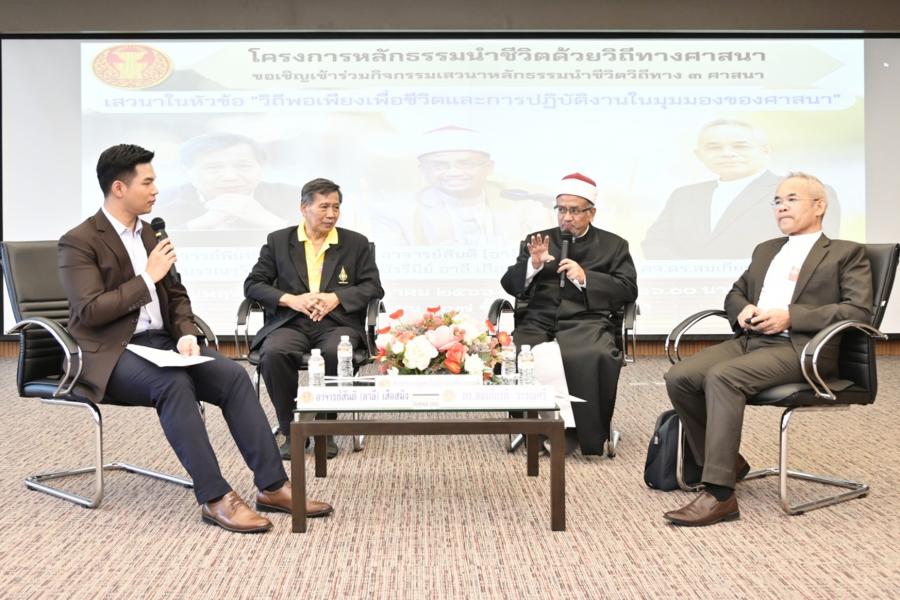พร้อมทั้งกล่าวต้อนรับวิทยากร และผู้เข้ารับการอบรม โดยมี น.ส.สิตาวีร์ ธีรวิรุฬ ผู้อำนวยการสำนักพัฒนาบุคลากร กล่าวรายงาน จากนั้น เป็นการเสวนาในหัวข้อ " วิถีพอเพียงเพื่อชีวิต และการปฏิบัติงานในมุมมองของศาสนา " ซึ่งได้รับเกียรติ จากวิทยากรร่วมเสวนา 3 ท่าน ประกอบด้วย 1. ศาสตราจารย์พิเศษ ร้อยโท ดร.บรรจบ บรรณรุจิ ราชบัณฑิต อาจารย์พิเศษมหาจุฬาลงกรณราชวิทยาลัย 2. อาจารย์สันติ (อาลี) เสือสมิง อบูอัรรีมีย์ อาลี เสือสมิง อัซซิยามีย์ ผู้ทรงคุณวุฒิและผู้ช่วยเลขานุการคณะผู้ทรงคุณวุฒิจุฬาราชมนตรี 3. ศาสนาจารย์ ดร. สมเกียรติ วรรณศรี คณะกรรมการประสานงานคริสตจักร และอนุกรรมการกำกับติดตามการขับเคลื่อนแผนแม่บทการส่งเสริมคุณธรรมแห่งชาติ ในคณะกรรมการส่งเสริมคุณธรรมแห่งชาติ ดำเนินรายการโดย นายณรงค์ฤทธิ์ คิดเห็น พนักงานวิชาการ จัดรายการวิทยุ สถานีวิทยุกระจายเสียงและวิทยุโทรทัศน์รัฐสภา