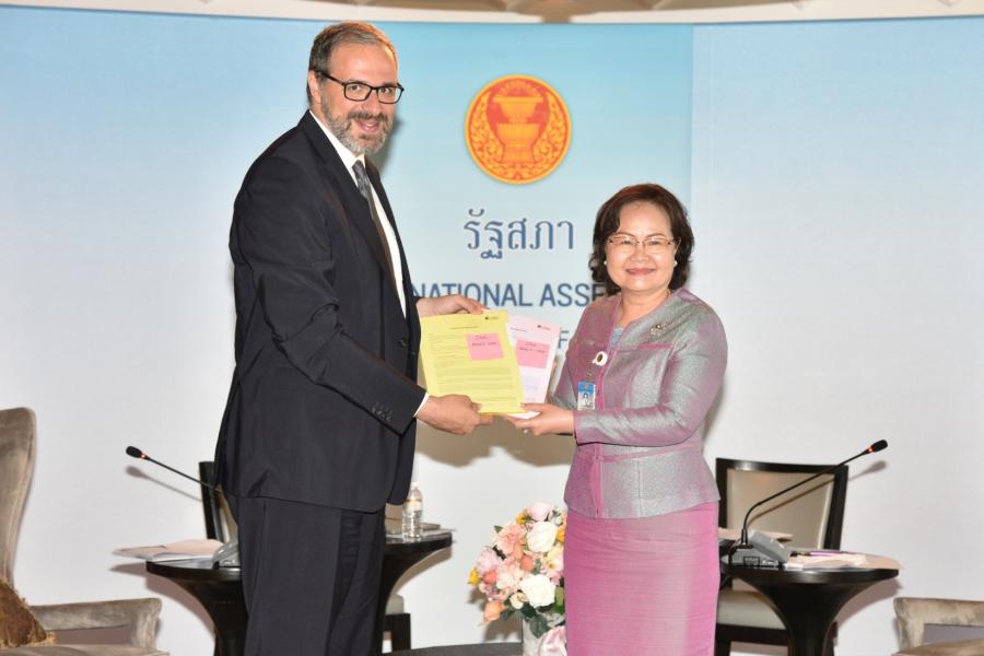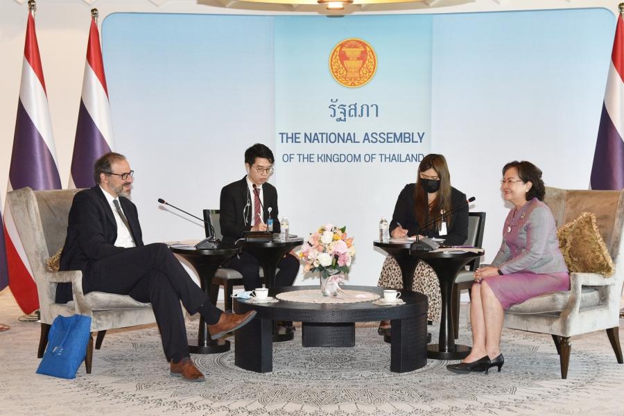 เลขาธิการสภาผู้แทนราษฎร ให้การรับรอง หัวหน้าทีมเอเชียและแปซิฟิก ฝ่ายความร่วมมือภาคพื้นยุโรปและนานาชาติ มูลนิธิคอนราด อาเดนาวร์ เพื่อแนะนำตัวและหารือเกี่ยวกับโครงการความร่วมมือระหว่างกันด้านการพัฒนาบุคลากรของรัฐสภา