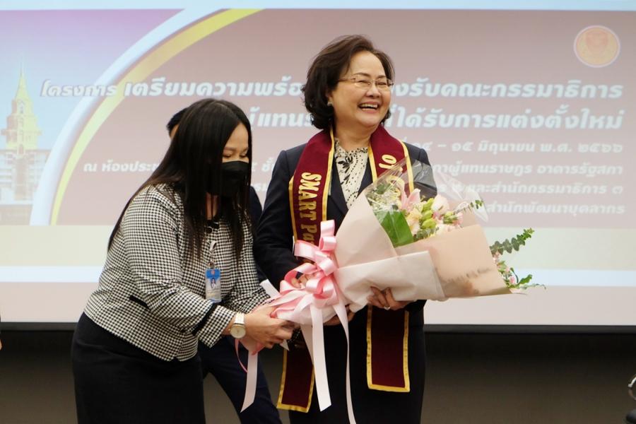 และในเวลา 10.30 นาฬิกา นางพรพิศ เพชรเจริญ เลขาธิการสภาผู้แทนราษฎร ให้เกียรติถ่ายทอดประสบการณ์ องค์ความรู้ และการสร้างแรงบันดาลใจในการเพิ่มขีดความสามารถการปฏิบัติงานของฝ่ายเลขานุการคณะกรรมาธิการเพื่อความเป็น “SMART Parliament” โดยเน้นย้ำว่า ขอให้ปฏิบัติงานด้วยความตั้งใจให้เป็นไปตามกฎหมายอย่างเคร่งครัด อาทิ พระราชบัญญัติข้อมูลข่าวสารของราชการ พ.ศ. 2540 และพระราชบัญญัติคุ้มครองข้อมูลส่วนบุคคล พ.ศ. 2562 โอกาสนี้ สำนักกรรมาธิการทั้ง 3 สำนัก เห็นพ้องต้องกันว่า ควรมอบรางวัลยกย่อง นางพรพิศ เพชรเจริญ เลขาธิการสภาผู้แทนราษฎร เป็นบุคคลต้นแบบ "SMART Parliament Queen of Committee" ที่เจริญก้าวหน้าในหน้าที่การงานตามลำดับ จนประสบความสำเร็จสูงสุดในฐานะผู้นำองค์กร