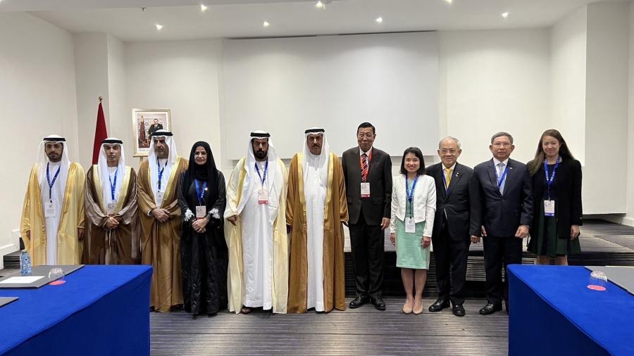 การพบปะหารือทวิภาคี สหรัฐอาหรับเอมิเรตส์ เวลา 12.00 น. ณ ห้องประชุม KARAM 1 คณะผู้แทนรัฐสภาไทยเข้าพบปะหารือทวิภาคีกับคณะผู้แทนสหรัฐอาหรับเอมิเรตส์ นำโดย Mr. Saqr GHOBASH ประธานสภาแห่งชาติของสหพันธรัฐ โดยทั้งสองฝ่ายได้ร่วมหารือแลกเปลี่ยนในประเด็นความสัมพันธ์ที่ดีของสองประเทศที่มีมาอย่างต่อเนื่องตลอด 47 ปี การเป็นเจ้าภาพจัดการประชุม COP28 ที่จะจัดขึ้นในปลายปี 2566 นี้ ของสหรัฐอาหรับเอมิเรตส์ การส่งเสริมการท่องเที่ยวระหว่างสองประเทศ รวมถึงการสนับสนุนการเจรจาจัดทำข้อตกลง CEPA (Comprehensive Economic Partnership Agreement) ทั้งนี้ไทยได้กล่าวแสดงความยินดีกับสหรัฐอาหรับเอมิเรตส์ที่ประสบความสำเร็จในการดำเนินการตามโครงการริเริ่มการยอมรับความแตกต่างที่หลากหลาย และชื่นชมวิสัยทัศน์และความพยายามในการสร้างสหรัฐอาหรับเอมิเรตส์ให้เป็นประเทศที่ยอมรับคนทุกกลุ่มโดยไม่แบ่งแยกและความหลากหลาย พร้อมกันนี้ได้มีการหารือประเด็นการจัดตั้งกลุ่มมิตรภาพสมาชิกรัฐสภาของทั้งสองประเทศ