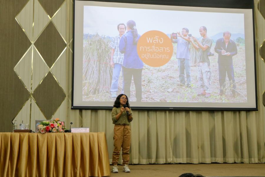 จากนั้นเป็นการบรรยายเรื่อง "การนำเสนอเนื้อหาที่เสริมสร้างความเป็นพลเมืองด้วยสื่อใหม่ (New Media)" โดย น.ส.วลัยลักษณ์  ชมโนนสูง เจ้าหน้าที่พัฒนาเครือข่ายอาวุโส สถานีโทรทัศน์ไทยพีบีเอสและทีมงาน เพื่อให้ยุวชนประชาธิปไตยเกิดทักษะในการสร้างสรรค์เนื้อหาที่เสริมสร้างความเป็นพลเมืองด้วยสื่อใหม่ (New Media) รวมถึงเทคนิคการจัดองค์ประกอบภาพ เพื่อให้ภาพถ่ายดูน่าสนใจยิ่งขึ้น
