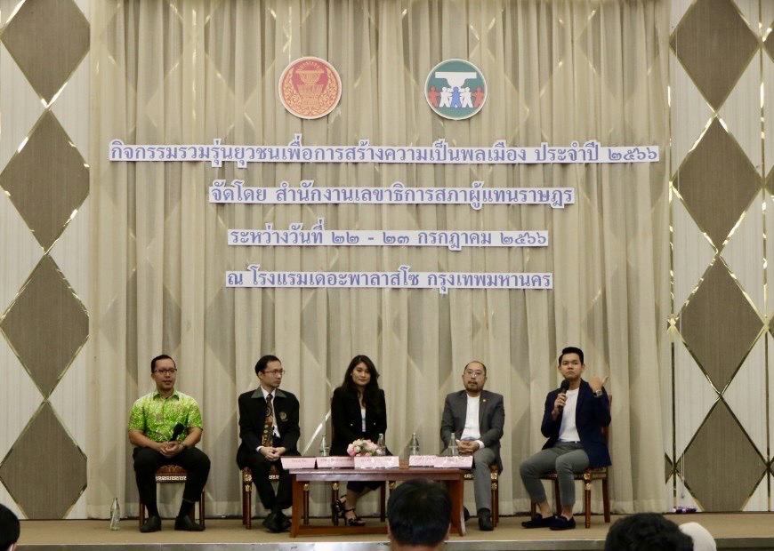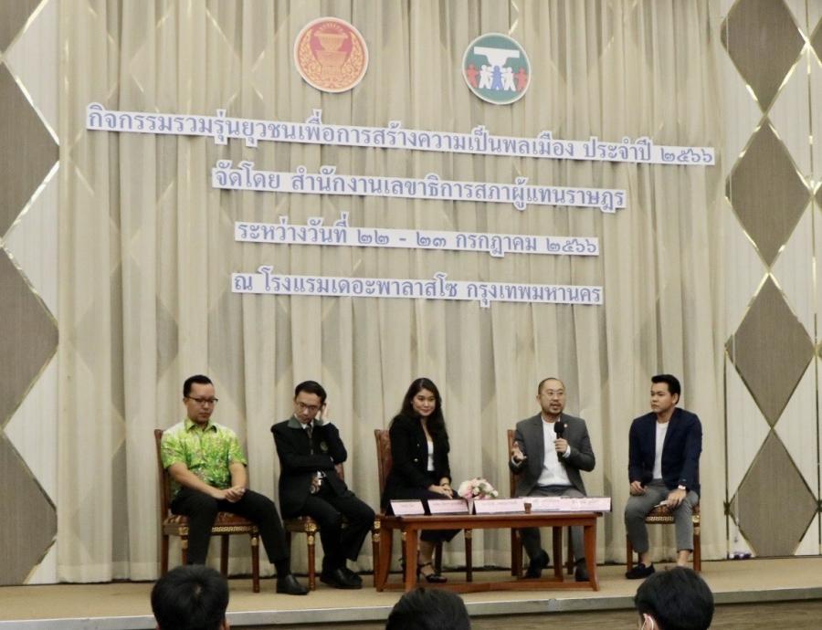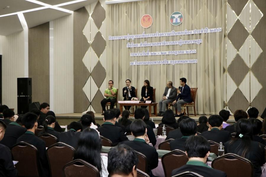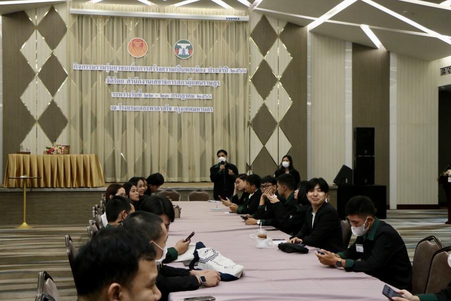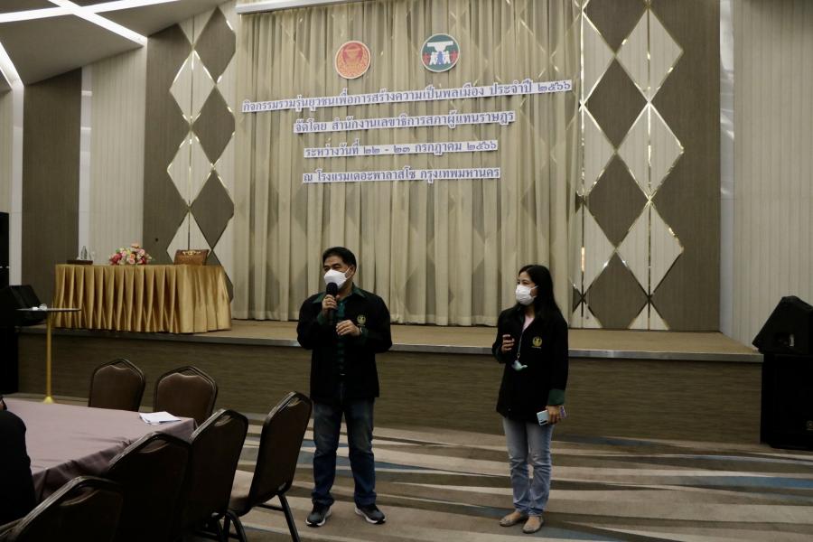 วันที่สองของโครงการส่งเสริมและสนับสนุนความเป็นพลเมืองของเยาวชนในระบอบประชาธิปไตยเพื่อพัฒนาประชาธิปไตยให้ยั่งยืน กิจกรรมรวมรุ่นเยาวชนเพื่อการสร้างความเป็นพลเมืองประจำปี 2566 ณ โรงแรมพาลาสโซ่ กรุงเทพฯ