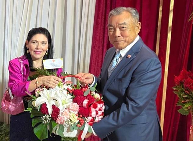 วันพฤหัสบดีที่ 27 กรกฎาคม 2566 เวลา 18.30 นาฬิกา ณ โรงแรมอนันตรา สยาม กรุงเทพฯ พล.อ.ธีรเดช มีเพียร สมาชิกวุฒิสภา ในฐานะประธานกลุ่มมิตรภาพสมาชิกรัฐสภาไทย - เปรู เข้าร่วมงานวันชาติสาธารณรัฐเปรู และมอบกระเช้าดอกไม้แก่ น.ส.เซซิเลีย ซูนิลดา กาลาร์เรตา บาซัน (Ms. Cecilia Zunilda Galarreta Bazán) เอกอัครราชทูตสาธารณรัฐเปรูประจําประเทศไทย เพื่อแสดงความยินดีในโอกาสดังกล่าว