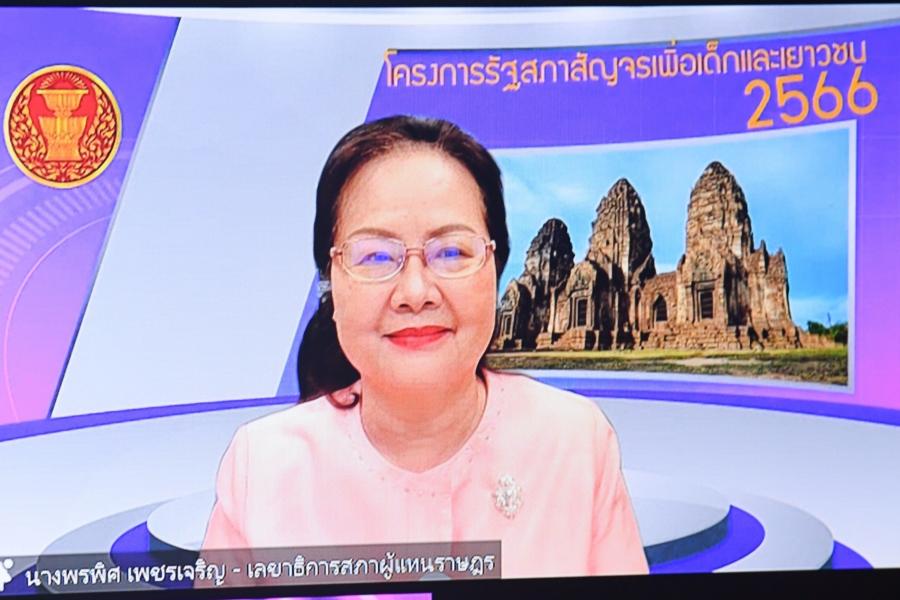 เลขาธิการสภาผู้แทนราษฎร เป็นประธานในพิธีเปิดโครงการรัฐสภาสัญจรเพื่อเด็กและเยาวชน ประจำปีงบประมาณ พ.ศ. 2566 จังหวัดลพบุรี ผ่านสื่ออิเล็กทรอนิกส์ ครั้งที่ 1/2566