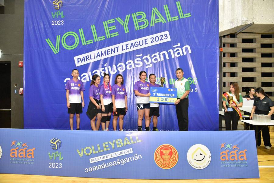 โดยว่าที่ ร.ต.ยุทธนา สำเภาเงิน ที่ปรึกษาด้านกฎหมาย ได้มอบรางวัลให้แก่ ทีมที่ชนะการแข่งขัน ซึ่งทีมที่ได้รางวัล CHAMPION วอลเลย์บอลรัฐสภาลีก 2023 ได้รับเงินรางวัล จำนวน 4,000 บาท พร้อมถ้วยเกียรติยศ ได้แก่ ทีมสำนักกรรมาธิการ 3 และสำนักรายงานการประชุมและชวเลข