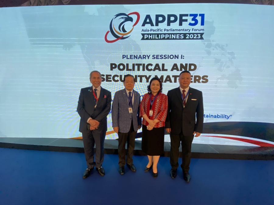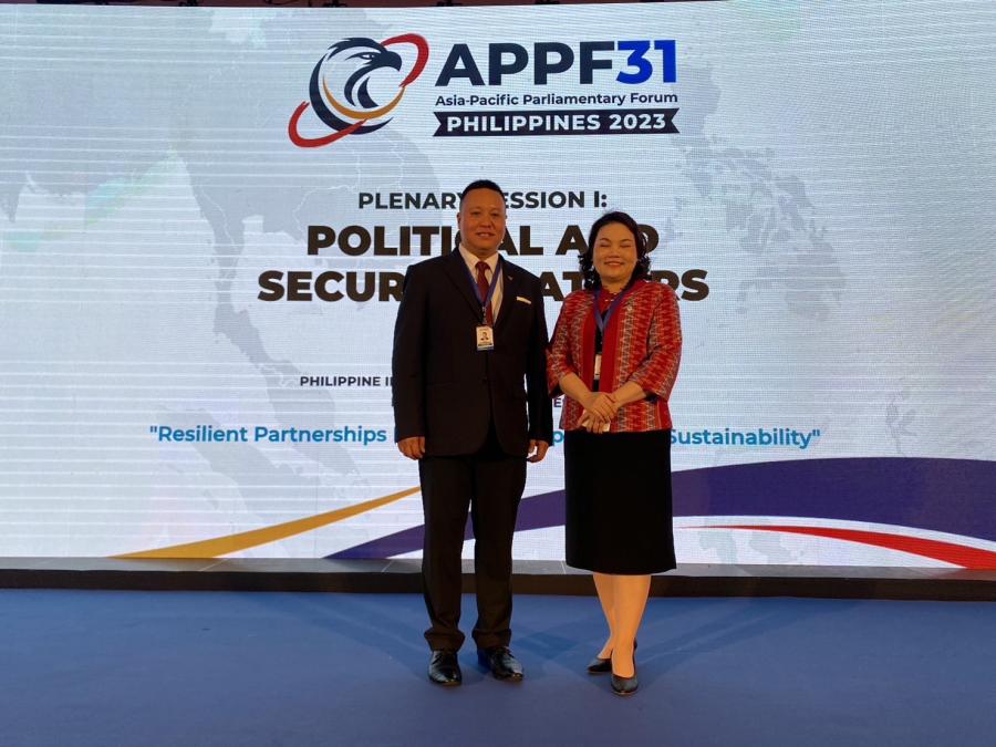 เมื่อวันศุกร์ที่ 24 พฤศจิกายน 2566 เวลา 09.00 นาฬิกา ณ ศูนย์การประชุมนานาชาติฟิลิปปินส์ ในการประชุมเต็มคณะ วาระที่ 1 ด้านการเมืองและความมั่นคง ว่าที่ร้อยตรีสมชาติ เตชถาวรเจริญ สมาชิกสภาผู้แทนราษฎร และนางสาววิไลลักษณ์ อรินทมะพงษ์ สมาชิกวุฒิสภา ในฐานะผู้แทนรัฐสภาไทย ได้เข้าร่วมการประชุมเต็มคณะวาระที่ 1 ด้านการเมืองและความมั่นคง โดยผู้แทนฯ ทั้ง 2 คน ได้ร่วมกล่าวถ้อยแถลงต่อที่ประชุม ซึ่งมีประเทศสมาชิก APPF จำนวน 19 ประเทศเข้าร่วมประชุมในวาระดังกล่าว โดยว่าที่ร้อยตรีสมชาติ เตชถาวรเจริญ สมาชิกสภาผู้แทนราษฎร ได้กล่าวถ้อยแถลงภายใต้หัวข้อ การเสริมสร้างประสิทธิภาพของรัฐสภาเพื่อส่งเสริมสันติภาพและเสถียรภาพ (Strengthening the Capacity of Parliaments to Promote Peace and Stability) โดยได้กล่าวถึงความสำคัญของการทูตแบบรัฐสภาในการส่งเสริมสันติภาพและเสถียรภาพ โดยเฉพาะในภูมิภาคเอเชียแปซิฟิกที่มีความหลากหลายและมีพลวัตร รัฐสภาในฐานะเสาหลักของประชาธิปไตย มีความสำคัญอย่างยิ่งในการบรรลุสันติภาพและการพัฒนาทั้งภายในประเทศและระหว่างประเทศ สำหรับการต่างประเทศของไทย รัฐสภาไทยมีส่วนร่วมอย่างแข็งขันผ่านกลไกรัฐสภา เช่น การมีบทบาทสำคัญในการให้ความเห็นชอบต่อหนังสือสัญญาระหว่างประเทศ และรัฐสภาไทยมีความพยายามในการปรับปรุงและแก้ไขกฎหมายภายในประเทศให้สอดคล้องกับพันธกรณีระหว่างประเทศในการส่งเสริมสันติภาพและความมั่นคง เช่น การปฏิบัติตามกติการะหว่างประเทศว่าด้วยสิทธิพลเมืองและสิทธิทางการเมือง (International Covenant on Civil and Political Rights: ICCPR) และกติการะหว่างประเทศว่าด้วยสิทธิทางเศรษฐกิจ สังคม และวัฒนธรรม(International Convent on Economic, Social and Cultural Rights: ICESCR) รวมถึงการมีส่วนร่วมในการทูตรัฐสภาทั้งในระดับพหุภาคีและทวิภาคีเพื่อส่งเสริมความร่วมมือระหว่างประเทศ ส่งเสริมสันติภาพ ความมั่นคง และการพัฒนาที่ยั่งยืน ประเทศไทยยังให้ความสำคัญกับสันติภาพ ความมั่นคง และสิทธิมนุษยชน โดยตระหนักถึงการพึ่งพาอาศัยกันขององค์ประกอบดังกล่าว เพื่อความเป็นอยู่ที่ดีของพลเมืองและมุ่งมั่นที่จะพัฒนาสิทธิมนุษยชนและประชาธิปไตย โดยมุ่งเน้นที่ความเสมอภาคและความยุติธรรมสำหรับกลุ่มเปราะบาง ความพยายามในการปรับแก้ไขกฎหมายและเพิ่มความโปร่งใสของรัฐบาล เพื่อให้มั่นใจว่ามีการใช้หลักนิติธรรมอย่างยุติธรรมและเสมอภาค นอกจากนี้ ประเทศไทยยังมีปณิธานในการลงสมัครรับเลือกตั้งเป็นสมาชิกคณะมนตรีสิทธิมนุษยชนแห่งสหประชาชาติ หรือ Human Rights Council วาระปี 2568-2570 (ค.ศ. 2025-2027) ซึ่งสิ่งเหล่านี้สะท้อนให้เห็นถึงความมุ่งมั่นในการส่งเสริมสิทธิมนุษยชนระดับ