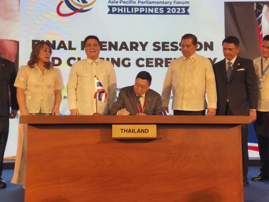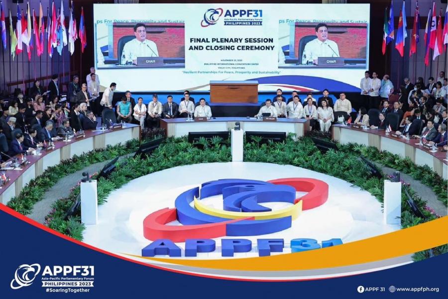 เมื่อวันเสาร์ที่ 25 พฤศจิกายน 2566 เวลา 14.00 น. ณ ศูนย์การประชุมนานาชาติฟิลิปปินส์ ศาสตราจารย์พิเศษพรเพชร วิชิตชลชัย ประธานวุฒิสภาและรองประธานรัฐสภา ในฐานะหัวหน้าคณะผู้แทนรัฐสภาไทย พร้อมด้วยนายตุลย์ ไตรโสรัส เอกอัครราชทูต ณ กรุงมะนิลา ในฐานะที่ปรึกษาคณะผู้แทนรัฐสภาไทย ได้นำคณะผู้แทนรัฐสภาไทยเข้าร่วมการประชุมเต็มคณะวาระที่ 4 และพิธีปิดการประชุม APPF ครั้งที่ 31 โดยในการประชุมเต็มคณะวาระที่ 4 ที่ประชุมได้รับทราบรายงานผลการประชุมวาระต่าง ๆ ประกอบด้วย การประชุมสมาชิกรัฐสภาสตรี โดยนาง Pia S. Cayetano สมาชิกวุฒิสภา การประชุมคณะกรรมาธิการยกร่างข้อมติและแถลงการณ์ร่วม โดยนางสาว Loren Legarda สมาชิกวุฒิสภา และนาย Juan Miguel F. Zubiri ประธานวุฒิสภา ได้กล่าวรายงานต่อที่ประชุมเพื่อสรุปผลการประชุม APPF ครั้งที่ 31