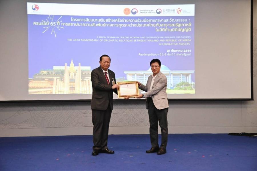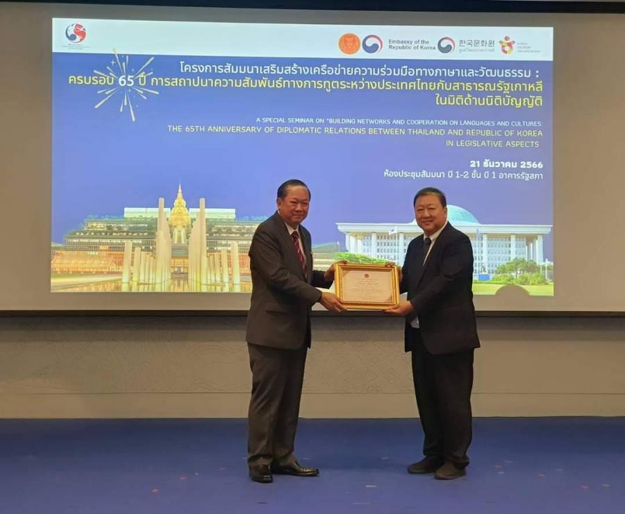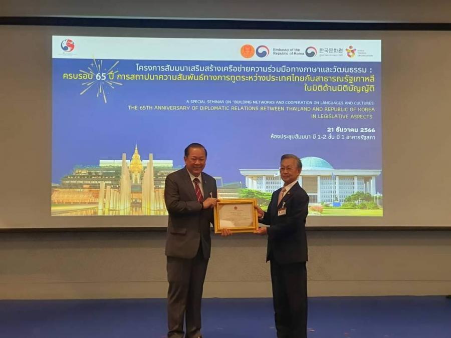 นอกจากนี้ ในโอกาสครบรอบ 65 ปี การสถาปนาความสัมพันธ์ทางการทูตระหว่างประเทศไทยกับสาธารณรัฐเกาหลี ในปี 2566 สำนักงานเลขาธิการสภาผู้แทนราษฎรได้มอบเกียรติบัตรเพื่อแสดงความขอบคุณและยกย่องเชิดชูเกียรติบุคคลสำคัญ ผู้มีคุณูปการด้านการเสริมสร้างความสัมพันธ์ระหว่างราชอาณาจักรไทยกับสาธารณรัฐเกาหลี ตลอดจนส่งเสริมและสนับสนุนภารกิจของสำนักงานเลขาธิการสภาผู้แทนราษฎรให้สำเร็จลุล่วงไปได้ด้วยดี ประกอบด้วยบุคคล ดังนี้