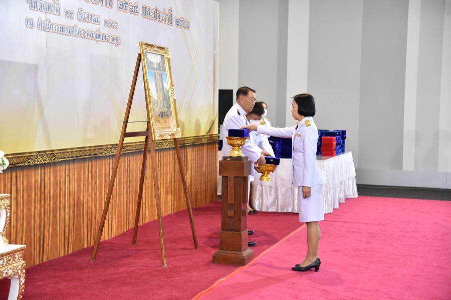 วันจันทร์ที่ 25 ธันวาคม 2566 เวลา 09.00 นาฬิกา ณ ห้องประชุม สัมมนาใหญ่ โซน C ชั้น B1 อาคารรัฐสภา ตามที่พระบาทสมเด็จพระเจ้าอยู่หัว ทรงพระกรุณาโปรดเกล้าฯ พระราชทานเครื่องราชอิสริยาภรณ์ อันเป็นที่เชิดชูยิ่งช้างเผือก และเครื่องราชอิสริยาภรณ์อันมีเกียรติยศยิ่งมงกุฎไทย ประจำปี 2565 และประจำปี 2566 เนื่องในโอกาสพระราชพิธีเฉลิมพระชนมพรรษา วันที่ 28 กรกฎาคม 2565 - 2566 และทรงพระกรุณาโปรดเกล้าฯ ให้หน่วยงานต่าง ๆ จัดพิธีรับพระราชทานเครื่องราชอิสริยาภรณ์หน้าพระบรมฉายาลักษณ์พระบาทสมเด็จพระเจ้าอยู่หัว นั้น