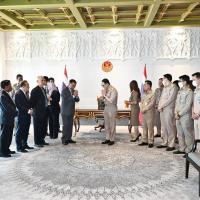 | วันจันทร์ที่ 8 มกราคม 2567 13.00 นาฬิกา ณ ห้องรับรองพิเศษ 205 ชั้น 2 อาคารรัฐสภา นายวันมูหะมัดนอร์ มะทา ประธานสภาผู้แทนราษฎร รับการอวยพรและสวัสดีปีใหม่จาก ข้าราชการสำนักงานประธานสภาผู้แทนราษฎร นำโดย นายนาถะ ดวงวิชัย ผู้อำนวยการสำนักงานประธานสภาผู้แทนราษฎร เนื่องในโอกาสวันขึ้นปีใหม่ พุทธศักราช 2567 |