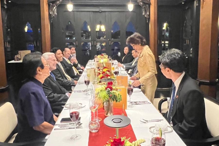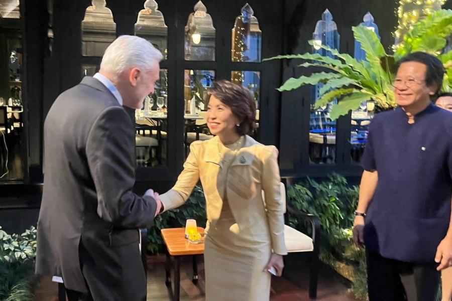 เมื่อวันอังคารที่ 30 มกราคม 2567 เวลา 18.30 นาฬิกา ณ ห้องอาหารไทย ศาลาทิพย์ โรงแรมแชงกรี-ลา กรุงเทพฯ นางสุวรรณี สิริเวชชะพรรณ สมาชิกวุฒิสภาในฐานะประธานกลุ่มมิตรภาพฯ ไทย-โปรตุเกส เป็นเจ้าภาพเลี้ยงอาหารค่ำเพื่อเป็นเกียรติแก่นายจูอาว บือร์นาดู ดือ โอลิเวรา มาร์ติน ไวนชไตน์ (H.E. Mr. João-Bernardo de Oliveira Martins Weinstein) เอกอัครราชทูตสาธารณรัฐโปรตุเกสประจำประเทศไทย พร้อมคณะ เพื่อแนะนำคณะกรรมการบริหารกลุ่มมิตรภาพสมาชิกรัฐสภาไทย-โปรตุเกสชุดใหม่