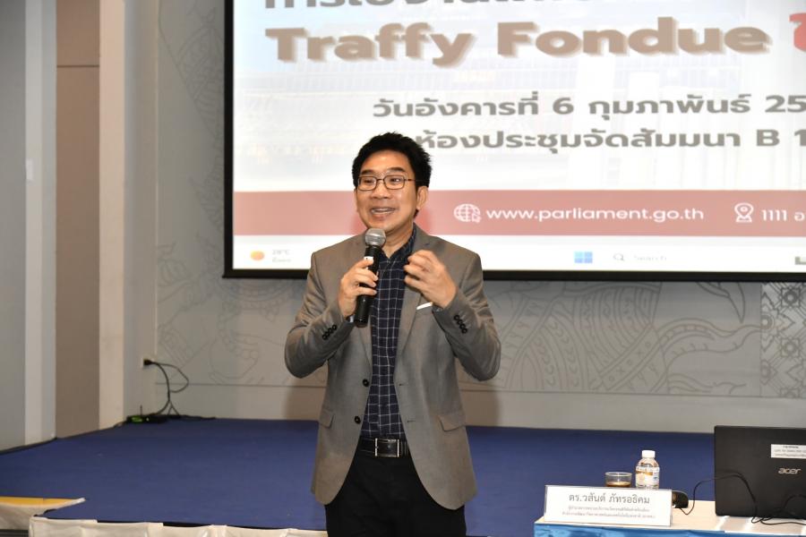 โอกาสนี้ รองประธานสภาผู้แทนราษฎร คนที่หนึ่ง กล่าวมอบนโยบายตอนหนึ่งว่า การนำแพลตฟอร์มดังกล่าวมาประยุกต์ใช้ตามแนวทางการพัฒนารัฐสภาสู่การเป็น SMART Parliament หรือ รัฐสภาสามารถ ซึ่งแพลตฟอร์มTraffy Fondue เป็นแพลตฟอร์มสำคัญที่ทำให้ประชาชนมีส่วนร่วมในการพัฒนาเมืองให้น่าอยู่ และมีส่วนช่วยในการแก้ไขปัญหาต่าง ๆ ของเมืองได้อย่างครบวงจร ระหว่างประชาชนและหน่วยงานที่รับผิดชอบ ซึ่งประชาชนสามารถแจ้งปัญหาที่พบไปให้ผู้ที่รับผิดชอบได้โดยตรงผ่านทางแอปพลิเคชันบนมือถือ เพื่อให้แก้ไขปัญหาได้อย่างรวดเร็ว ไม่ว่าจะเป็นปัญหาความสะอาด ปัญหาทางเท้า ไฟส่องสว่าง หรือถนนชำรุด โดยเป็นการแจ้งปัญหาในรูปแบบที่มีข้อมูลเพียงพอให้หน่วยงานสามารถดำเนินการแก้ไขปัญหาได้ทันที เช่น มีภาพถ่าย และตำแหน่งบนแผนที่ ขณะเดียวกันหน่วยงานที่รับผิดชอบก็สามารถให้ข้อมูลและปรับปรุงข้อมูลในการแก้ไขปัญหา สื่อสารกลับมาให้แก่ประชาชนได้ นอกจากนี้ในส่วนของเจ้าหน้าที่ยังมีระบบบริหารจัดการและติดตามปัญหา รวมทั้งบริการข้อมูลทางสถิติ เพื่อเพิ่มประสิทธิภาพการวางแผนงบประมาณและกำลังคน ซึ่งหน่วยงานของรัฐและเอกชนสามารถตั้งกลุ่มรับแจ้งและบริหารจัดการปัญหาของตนเองได้อีก