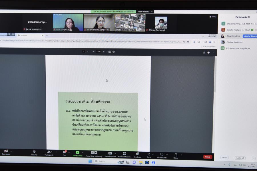 | วันศุกร์ที่ 9 กุมภาพันธ์ 2567 เวลา 09.30 นาฬิกา ณ ห้องประชุม 305 ชั้น 3 อาคารรัฐสภา พล.อ.ดนัย มีชูเวท สมาชิกวุฒิสภา เป็นประธานการประชุมคณะอนุกรรมการขับเคลื่อนเพื่อการพัฒนาแพลตฟอร์มสำหรับระบบสนับสนุนการตรากฎหมาย ครั้งที่ 1/2567 เพื่อพิจารณาแนวทางการดำเนินงานตามหน้าที่และอำนาจของคณะอนุกรรมการฯ |