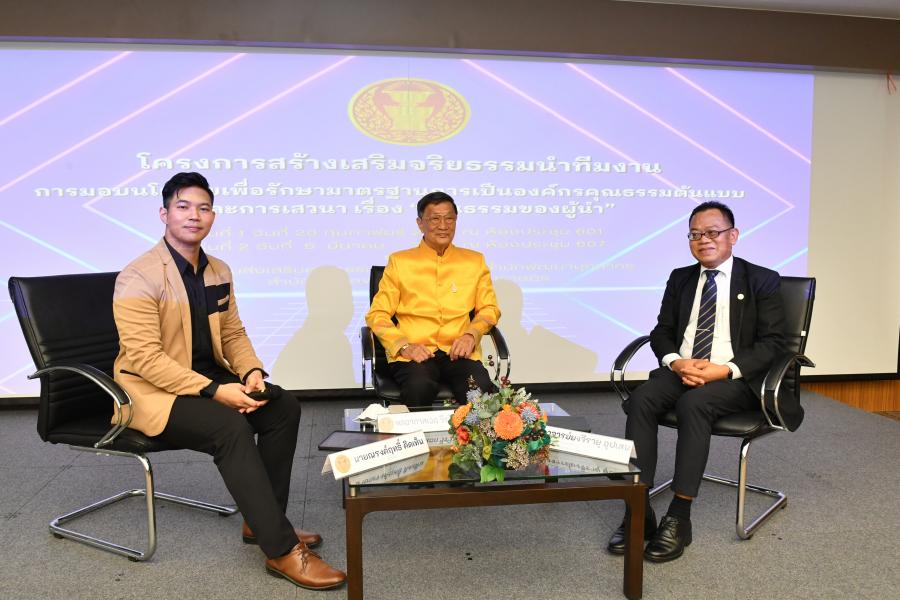 จากนั้น เวลา 09.00 นาฬิกา มีการเสวนา เรื่อง คุณธรรมของผู้นำ โดยได้รับเกียรติจาก พล.อ.อ.วีรวิท คงศักดิ์ ประธานมูลนิธิส่งเสริมการป้องกันและปราบปรามการทุจริต และประธาน อ.ก.ร. สรรหาพัฒนา และส่งเสริมสมรรถภาพข้าราชการและ อาจารย์ยงจิรายุ อุปเสน ผู้จัดการสำนักส่งเสริมและขับเคลื่อนเครือข่ายทางสังคม ศูนย์คุณธรรม (องค์การมหาชน) ร่วมเสวนาดำเนินการเสวนา โดย นายณรงค์ฤทธิ์ คิดเห็น พนักงานวิชาการ จัดรายการวิทยุ สถานีวิทยุกระจายเสียงและวิทยุโทรทัศน์รัฐสภา โดยโครงการดังกล่าวมีระยะเวลาดำเนินการในปีงบประมาณ พ.ศ. 2567 จำนวน 2 รุ่น คือ รุ่นที่ 1 เมื่อวันที่ 20 ก.พ. 67 และรุ่นที่ 2 ในวันนี้ (5 มี.ค. 67)