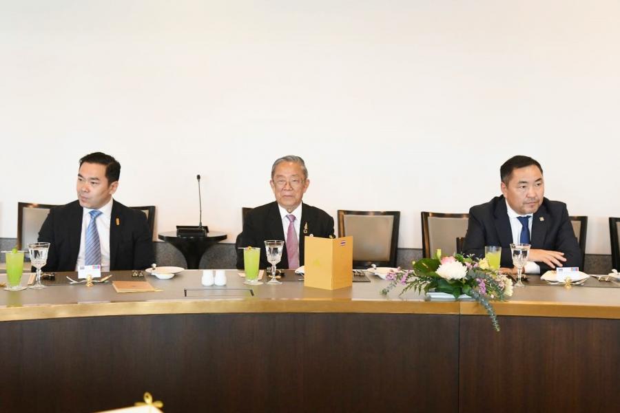 จากนั้น เวลา 12.30 น. กลุ่มมิตรภาพฯ ไทย - มองโกเลีย นำโดย นายอนุศักดิ์ คงมาลัย สมาชิกวุฒิสภา และประธานกลุ่ม เป็นเจ้าภาพเลี้ยงอาหารกลางวันแก่คณะฯ โดยมี นายขวัญชาติ วงศ์ศุภรานันต์ สมาชิกวุฒิสภา และกรรมการ นายสถิตย์ ลิ่มพงศ์พันธุ์ พลโท จเรศักณิ์ อานุภาพ สมาชิกวุฒิสภาและที่ปรึกษา ศาสตราจารย์เกียรติคุณไกรสิทธิ์ ตันติศิรินทร์ และ นายสาธิต เหล่าสุวรรณ สมาชิกวุฒิสภา เข้าร่วมงานเลี้ยงอาหารกลางวันเพื่อเป็นเกียรติแก่คณะด้วย