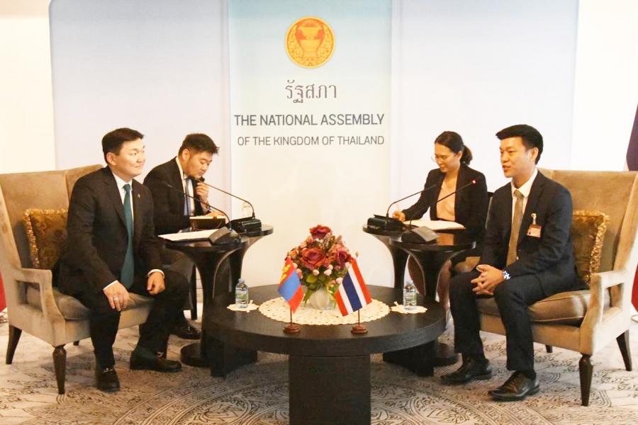 โดยทั้งสองฝ่ายได้หารือแนวทางในการกระชับความสัมพันธ์ระหว่างรัฐสภาทั้งสองประเทศให้แน่นแฟ้นยิ่งขึ้นรวมถึงแลกเปลี่ยนความคิดเห็นเกี่ยวกับบทบาทหน้าที่ของรัฐสภามองโกเลียและรัฐสภาไทย อีกทั้งปีนี้เป็นปีครบรอบ 50 ปีความสัมพันธ์ไทย - มองโกเลีย ทั้งสองฝ่ายจึงเห็นพ้องกันว่าพร้อมที่จะให้การสนับสนุนความสัมพันธ์และความร่วมมือด้านต่าง ๆ ของทั้งสองประเทศให้เป็นรูปธรรมมากยิ่งขึ้น