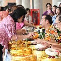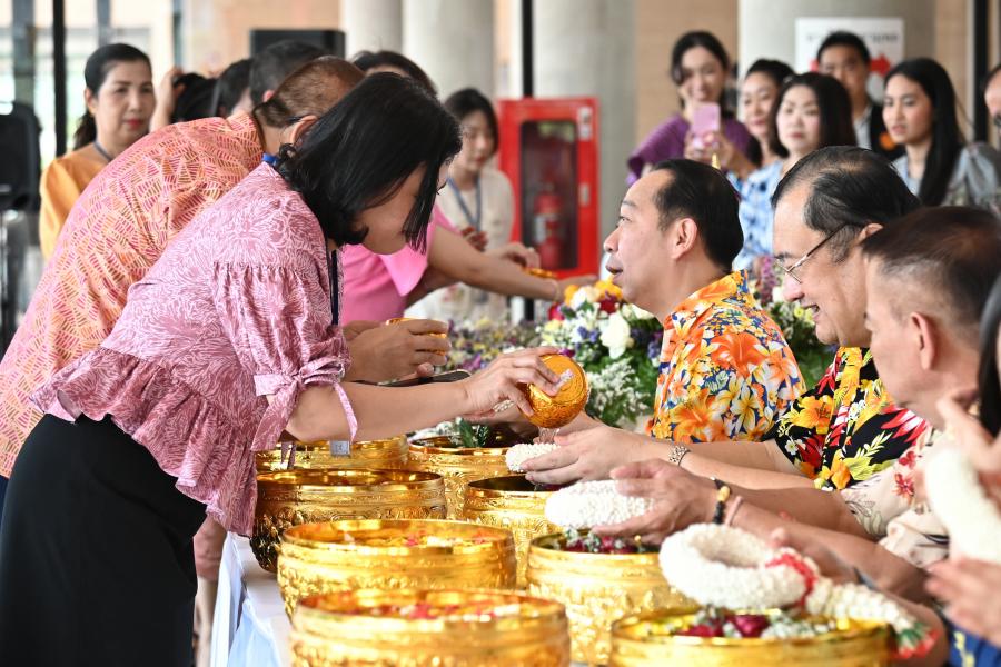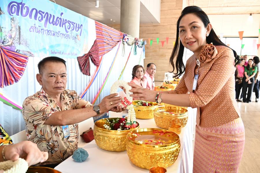 วันอังคารที่ 9 เมษายน 2567 เวลา 09.30 นาฬิกา ณ จุดรับยื่นหนังสือ (โซนกลาง) ชั้น 1 อาคารรัฐสภา นายศิโรจน์ แพทย์พันธุ์ รองเลขาธิการสภาผู้แทนราษฎร พร้อมด้วย นายณัฏฐกฤษฎ์ วงศ์เจริญ นายกฤษณะ จ้วงสินธุ์ ที่ปรึกษาด้านระบบงานนิติบัญญัติ น.ส.ปรียาภรณ์ แก้วโยน ผู้อำนวยการสำนักกรรมาธิการ 1 และน.ส.ปรัชยาภรณ์ อมรเวช ผู้อำนวยการสำนักกรรมาธิการ 3 พร้อมด้วยผู้ที่จะเกษียณอายุราชการ ประจำปี 2567 รับการอวยพรเนื่องในโอกาสเทศกาลวันขึ้นปีใหม่ของไทย (วันสงกรานต์) พ.ศ. 2567 ในกิจกรรม สงกรานต์หรรษา สำนักกรรมาธิการสุขใจ จัดโดยคณะทำงานรณรงค์ส่งเสริมการปฏิบัติตามประมวลจริยธรรมข้าราชการรัฐสภาและความโปร่งใสของสำนักกรรมาธิการ 1 สำนักกรรมาธิการ 2 และสำนักกรรมาธิการ 3 โอกาสนี้ นายศิโรจน์ แพทย์พันธุ์ กล่าวอวยพรแก่บุคลากรในสำนักกรรมาธิการ 1 2 และ 3