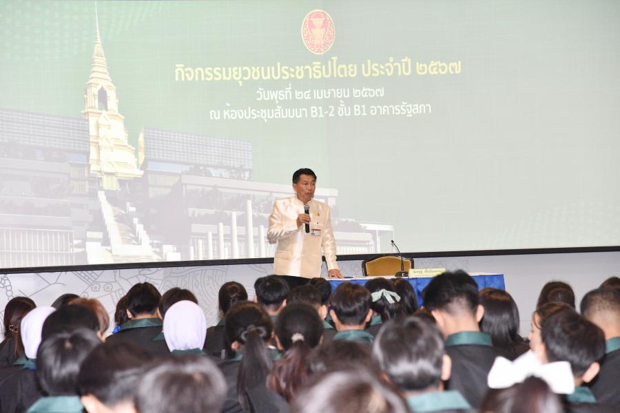 วันพุธที่ 24 เมษายน 2567 เวลา 10.00 นาฬิกา ณ ห้องประชุมสัมมนา B1-2 ชั้น B 1 อาคารรัฐสภา นายพิเชษฐ์ เชื้อเมืองพาน รองประธานสภาผู้แทนราษฎร คนที่สอง ให้การต้อนรับพร้อมกล่าวให้โอวาทกับยุวชนประชาธิปไตยประจำปีงบประมาณ พ.ศ. 2567 ใจความตอนหนึ่งว่า ยุวชนประชาธิปไตยคืออนาคตของประเทศ การจัดฝึกอบรมในครั้งนี้ยุวชนจะได้เรียนรู้เพิ่มพูนประสบการณ์ รวมถึงมีโอกาสเข้ามามีส่วนร่วมในกิจกรรมต่าง ๆ เพื่อจะได้นำความรู้ ความเข้าใจและประสบการณ์ที่ได้รับไปพัฒนาประชาธิปไตย พร้อมทั้งเล่าประสบการณ์ของชีวิตในการก้าวสู่สนามการเมือง จะต้องมีองค์ความรู้ อาชีพ ครอบครัวที่อบอุ่น จึงเดินเข้าสู่การเมืองได้ การตัดสินใจรับใช้พี่น้องประชาชน อันเนื่องมาจากรัฐธรรมนูญแห่งราชอาณาจักรไทย พุทธศักราช 2540 ที่ถูกขนานนามว่าเป็นรัฐธรรมนูญฉบับประชาชน เนื่องมาจากเป็นรัฐธรรมนูญที่มีส่วนร่วมจากประชาชนมากที่สุด ประชาชนมีความตื่นตัวเกี่ยวกับบ้านเมืองเป็นอย่างมาก ท้ายนี้ ขอให้ยุวชนประชาธิปไตย เป็นกำลังสำคัญในการพัฒนาประเทศชาติและสังคมให้เจริญก้าวหน้าต่อไป