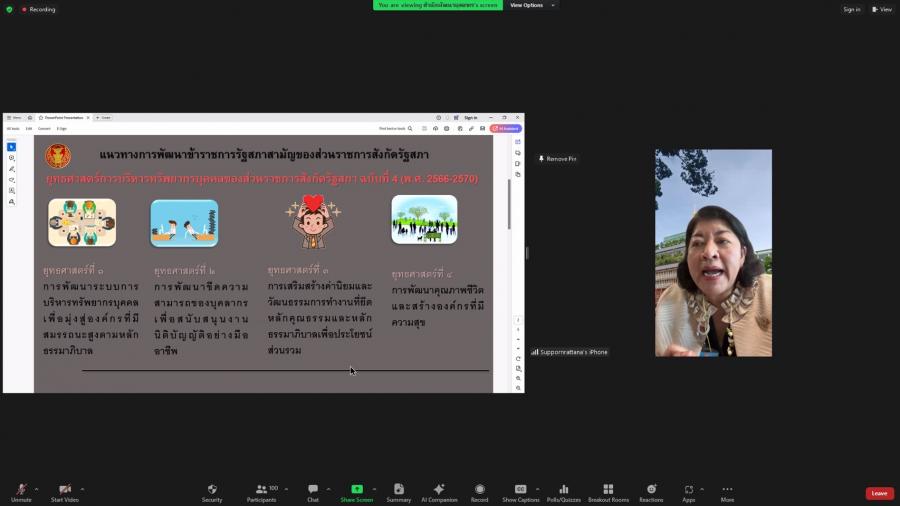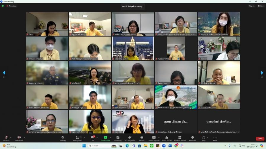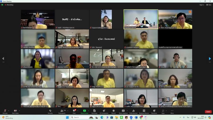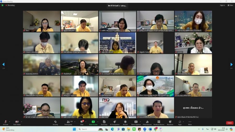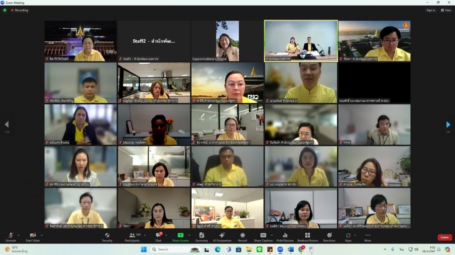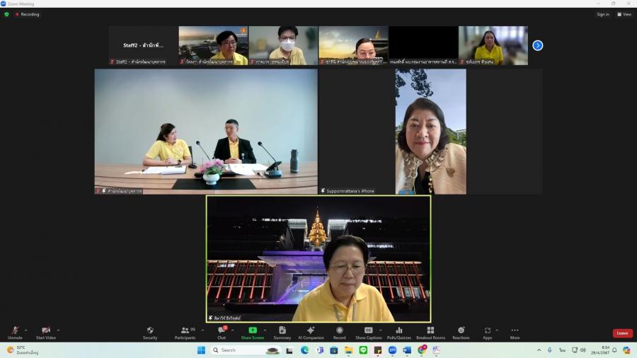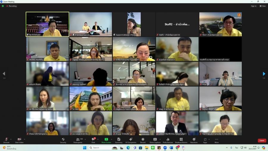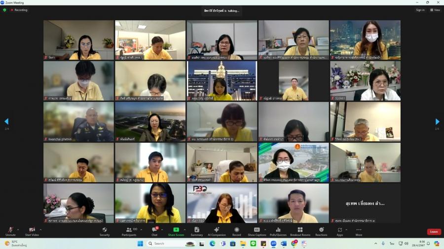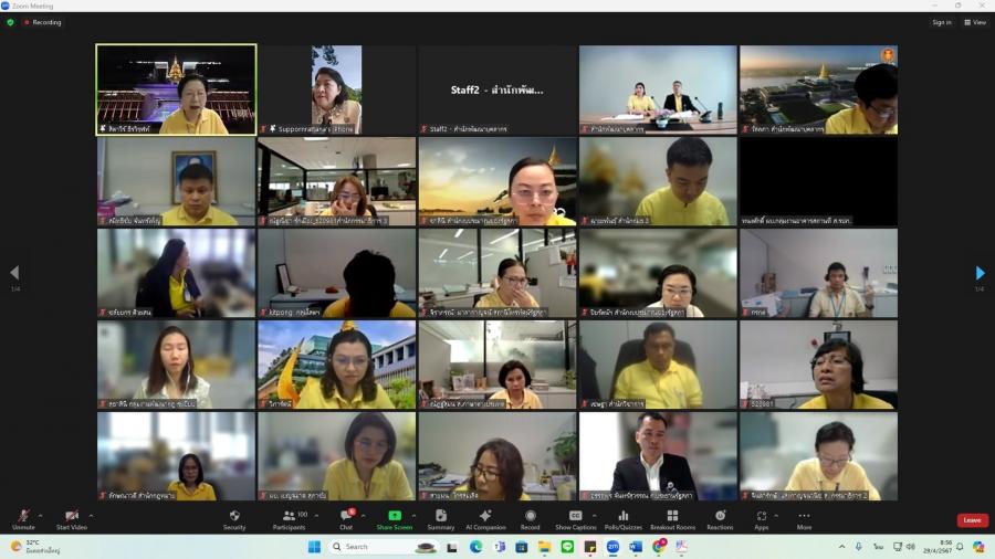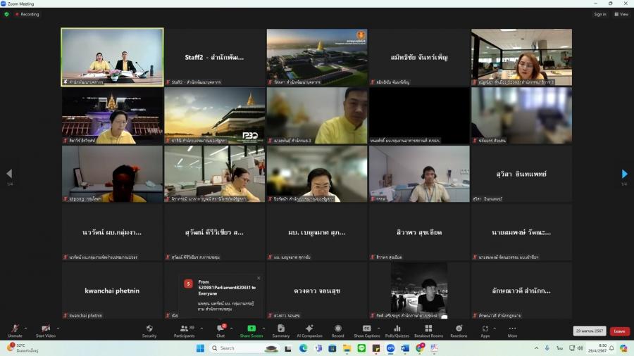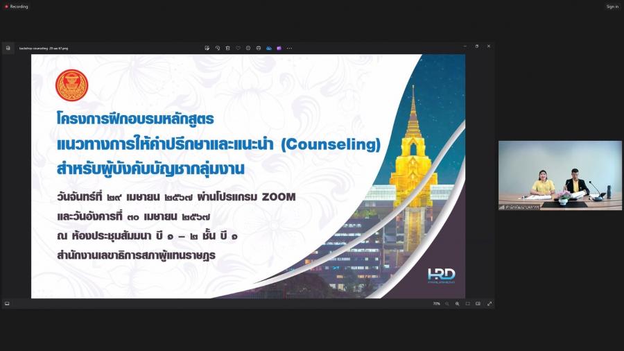 วันจันทร์ที่ 29 เมษายน 2567 เวลา 08.50 นาฬิกา ณ ห้องทำงานรองเลขาธิการสภาผู้แทนราษฎร ชั้น 3 อาคารรัฐสภา ว่าที่ ร.ต.ต.อาพัทธ์ สุขะนันท์ เลขาธิการสภาผู้แทนราษฎร มอบหมายให้ น.ส.ศุภพรรัตน์ สุขพุ่ม รองเลขาธิการสภาผู้แทนราษฎร เป็นประธานเปิดโครงการฝึกอบรมหลักสูตรแนวทางการให้คำปรึกษา และแนะนำ (Counseling) สำหรับผู้บังคับบัญชากลุ่มงาน ผ่านระบบออนไลน์ (โปรแกรม ZOOM) และบรรยายเรื่อง แนวทางการพัฒนาข้าราชการรัฐสภาสามัญของส่วนราชการสังกัดรัฐสภา โดยมี น.ส.สิตาวีร์ ธีรวิรุฬห์ ผู้อำนวยการสำนักพัฒนาบุคลากร กล่าวรายงาน