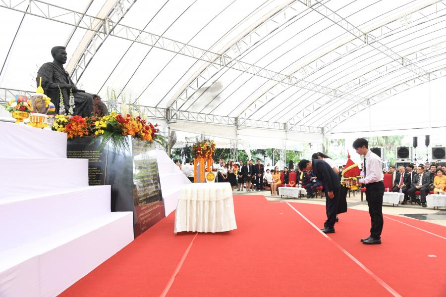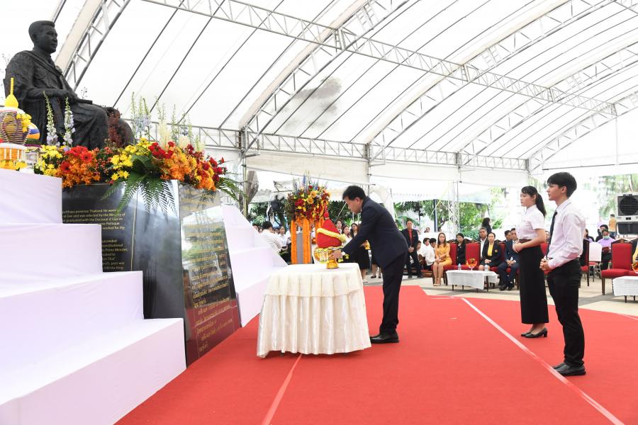 วันเสาร์ที่ 11 พฤษภาคม 2567 เวลา 09.00 นาฬิกา ณ อนุสาวรีย์ผู้ประศาสน์การศ.ดร.ปรีดี พนมยงค์ มหาวิทยาลัยธรรมศาสตร์ ท่าพระจันทร์ เขตพระนคร กรุงเทพฯ นายวันมูหะมัดนอร์ มะทา ประธานรัฐสภา และประธานสภาผู้แทนราษฎร มอบหมายให้ ว่าที่ร้อยตำรวจตรี อาพัทธ์ สุขะนันท์ เลขาธิการสภาผู้แทนราษฎร วางพานประดับพุ่มดอกไม้ในนาม ประธานรัฐสภา สักการะอนุสาวรีย์ศ.ดร.ปรีดี พนมยงค์ เนื่องในโอกาสการแสดงกตเวทิตา และรำลึกถึงคุณูปการของศ.ดร.ปรีดี พนมยงค์ รัฐบุรุษอาวุโส และผู้ประศาสน์การมหาวิทยาลัยวิชาธรรมศาสตร์และการเมือง พร้อมทั้งเข้าร่วมพิธีทางศาสนา
