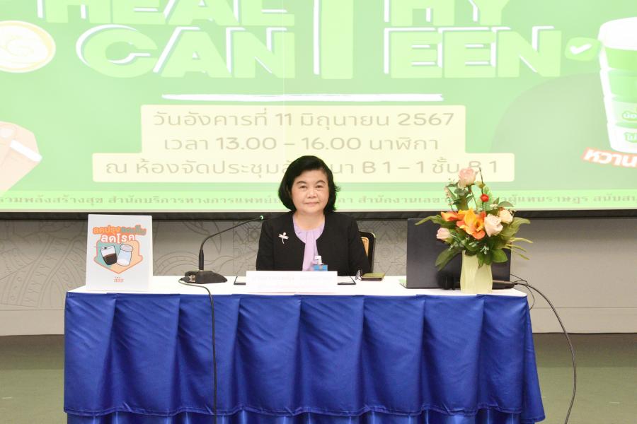 นางอารยะหญิง จอมพลาพล ที่ปรึกษาด้านระบบงานนิติบัญญัติ เป็นประธานในพิธีเปิดกิจกรรม“โรงอาหารปลอดภัยใส่ใจสุขภาพ (Healthy Canteen)"
