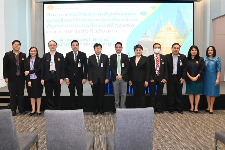 เลขาธิการสภาผู้แทนราษฎร เป็นประธานในพิธีเปิดโครงการรับฟังความคิดเห็นของผู้ที่มีส่วนได้เสียและผู้ที่เกี่ยวข้องกับการปรับปรุงโครงสร้างของส่วนราชการสังกัดรัฐสภา กิจกรรมที่ 1 การรับฟังความคิดเห็นของผู้บริหารของสำนักงานเลขาธิการสภาผู้แทนราษฎร
