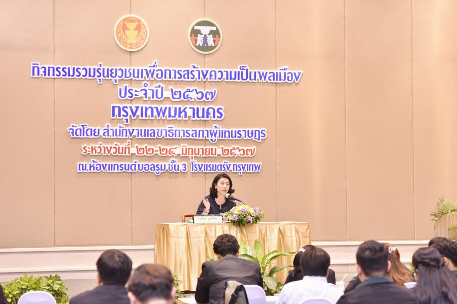 วันเสาร์ที่ 22 มิถุนายน 2567 เวลา 14.00 นาฬิกา ณ โรงแรมตรัง แขวงบางขุนพรหม เขตพระนคร กรุงเทพฯ นายวันมูหะมัดนอร์ มะทา ประธานสภาผู้แทนราษฎร มอบหมายให้ นางจงเดือน สุทธิรัตน์ รองเลขาธิการสภาผู้แทนราษฎร เป็นประธานในพิธีเปิดโครงการส่งเสริมและสนับสนุนความเป็นพลเมืองของเยาวชนในระบอบประชาธิปไตยเพื่อพัฒนาประชาธิปไตยให้ยั่งยืนกิจกรรมรวมรุ่นยุวชนเพื่อการสร้างความเป็นพลเมืองประจำปีงบประมาณ พ.ศ. 2567 โดยมี น.ส.มันทนา ศรีเพ็ญประภา ผู้บังคับบัญชากลุ่มงานเผยแพร่ประชาธิปไตยฯ กล่าวรายงาน