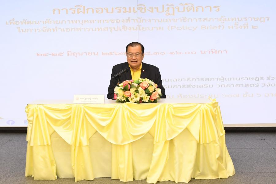 นายณัฏฐกฤษฎ์ วงศ์เจริญ รองเลขาธิการสภาผู้แทนราษฎร เป็นประธานในพิธีเปิดโครงการฝึกอบรมเชิงปฏิบัติการเพื่อพัฒนาศักยภาพบุคลากรของ สำนักงานเลขาธิการสภาผู้แทนราษฎรในการจัดทำเอกสารบทสรุปเชิงนโยบาย (Policy Brief) ครั้งที่ 2