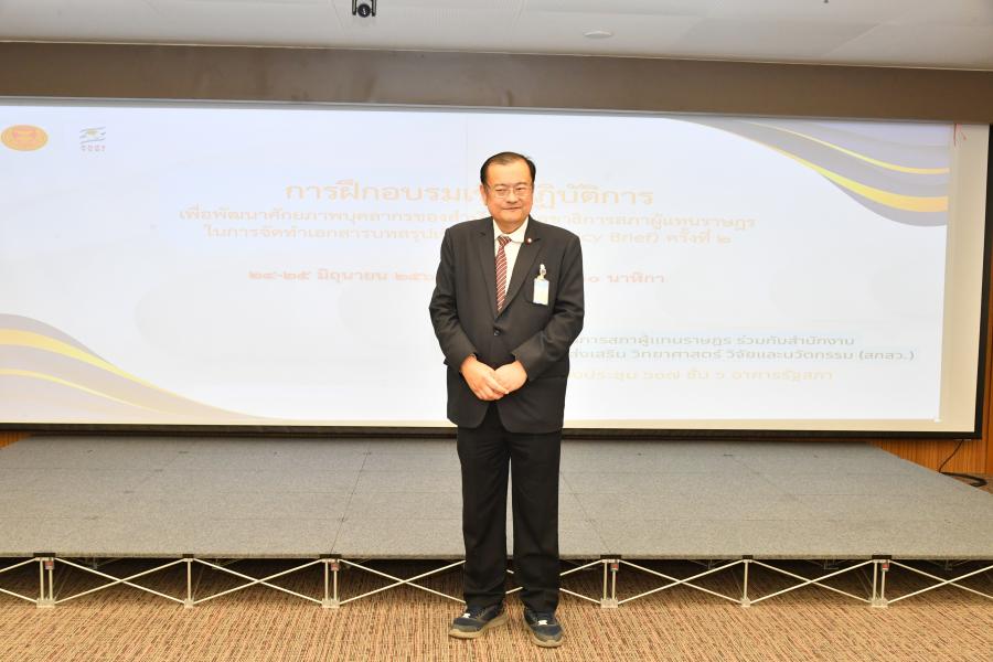ทั้งนี้ การฝึกอบรมเชิงปฏิบัติการดังกล่าว จัดโดยสำนักงานเลขาธิการสภาผู้แทนราษฎร ร่วมกับสำนักงานคณะกรรมการส่งเสริมวิทยาศาสตร์ วิจัย และนวัตกรรม (สกสว.) มีวัตถุประสงค์เพื่อยกระดับความรู้ ความเข้าใจ และทักษะของบุคลากรสำนักงานเลขาธิการสภาผู้แทนราษฎรในการจัดทำ Policy Brief ที่สอดคล้องกับภารกิจของบุคลากรสำนักงานเลขาธิการสภาผู้แทนราษฎร รวมทั้งทำให้เกิดการเชื่อมโยงระหว่างบุคลากรของสำนักงานเลขาธิการสภาผู้แทนราษฎรกับคณะทำงานโครงการยกระดับกลไกการเชื่อมโยงงานวิจัยและนวัตกรรมกับฝ่ายนิติบัญญัติ ที่จะนำไปสู่การทำงานร่วมกันในการผลักดันงานวิจัยและนวัตกรรมไปใช้ประโยชน์ในกระบวนการนิติบัญญัติของสภาผู้แทนราษฎรในอนาคตต่อไป