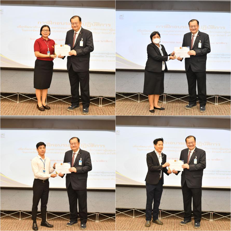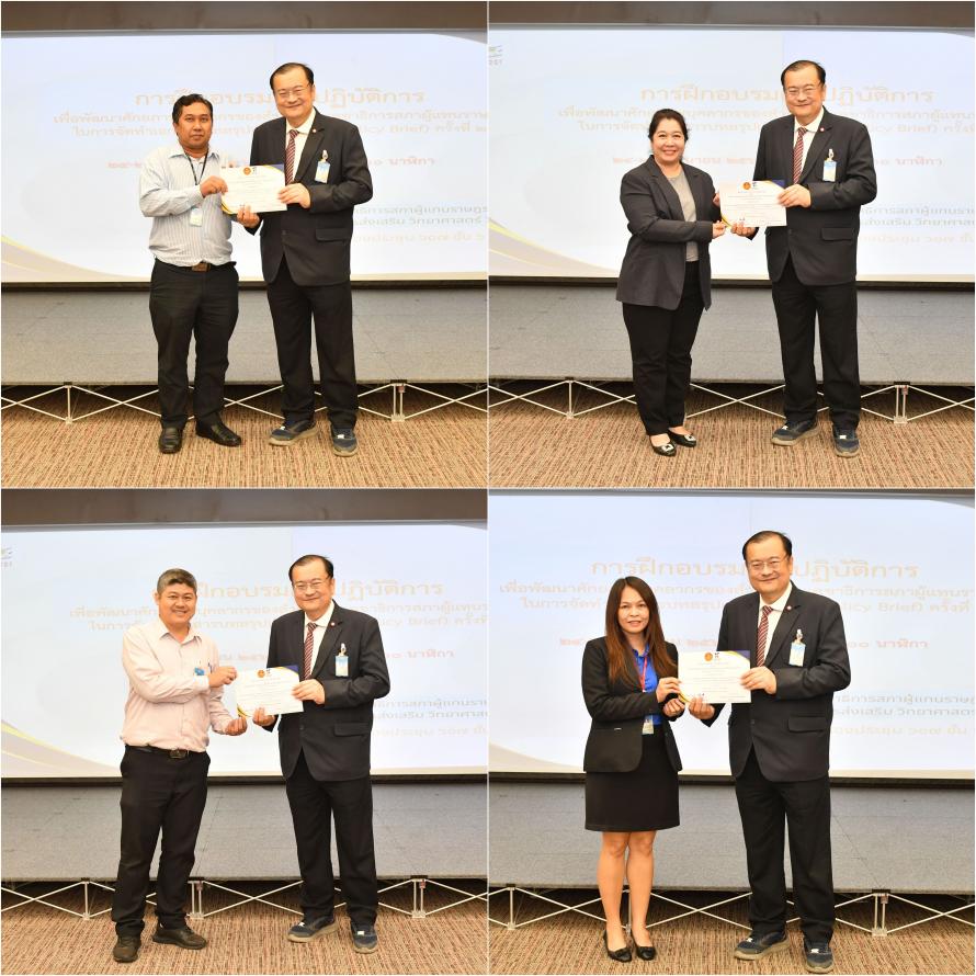 วันอังคารที่ 25 มิถุนายน 2567 เวลา 15.15 นาฬิกา ณ ห้องประชุม 607 ชั้น 6 อาคารรัฐสภา นายณัฏฐกฤษฎ์ วงศ์เจริญ รองเลขาธิการสภาผู้แทนราษฎร เป็นประธานในพิธีมอบประกาศนียบัตรให้แก่ผู้ผ่านการฝึกอบรมเชิงปฏิบัติการเพื่อพัฒนาศักยภาพบุคลากรของสำนักงานเลขาธิการสภาผู้แทนราษฎรในการจัดทำเอกสารบทสรุปเชิงนโยบาย (Policy Brief) ครั้งที่ 2 เพื่อสนับสนุนการดำเนินงานของคณะ กมธ. สส. และสำนักงานเลขาธิการสภาผู้แทนราษฎร ในการนี้ ศ.ดร.ภาคภูมิ ทิพคุณ รองคณบดีฝ่ายวิจัยและวิเทศสัมพันธ์ วิทยาลัยสหวิทยาการ มหาวิทยาลัยธรรมศาสตร์ และหัวหน้าโครงการยกระดับกลไกการเชื่อมโยงงานวิจัยและนวัตกรรมกับฝ่ายนิติบัญญัติ สำนักงานคณะกรรมการส่งเสริมวิทยาศาสตร์ วิจัยและนวัตกรรม (สกสว.) กล่าวปิดการฝึกอบรม