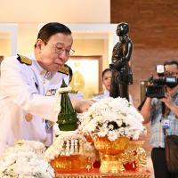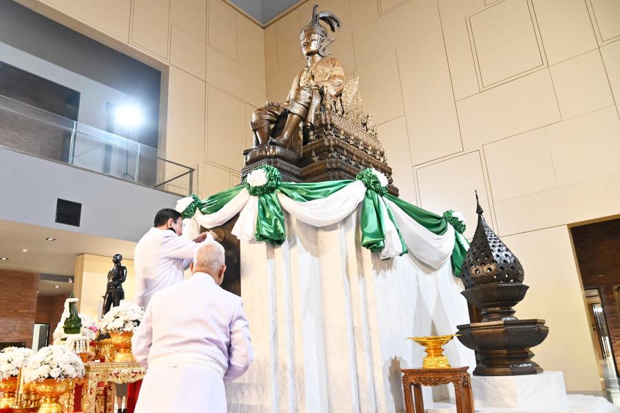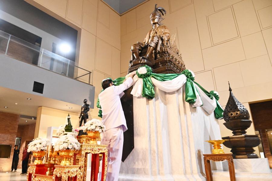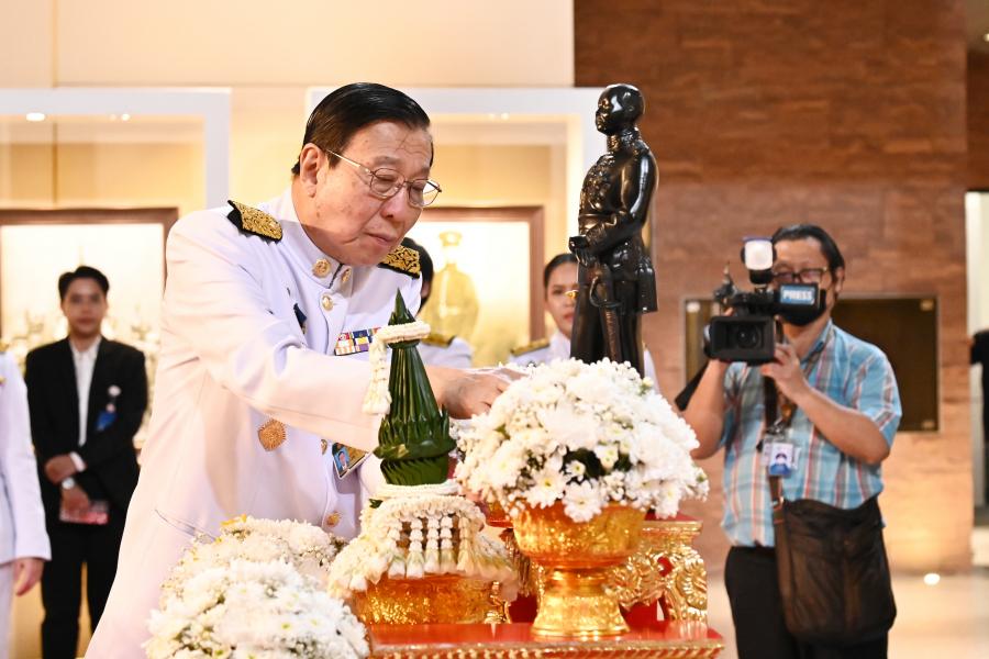 จากนั้น ศ.พิเศษพรเพชร วิชิตชลชัย และแขกผู้มีเกียรติถวายพวงมาลัยพระบรมราชานุสาวรีย์พระบาทสมเด็จพระปกเกล้าเจ้าอยู่หัว
