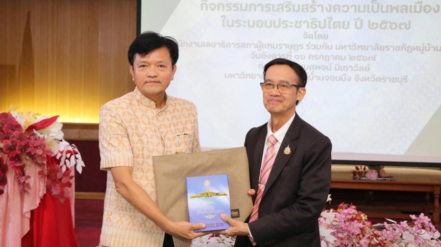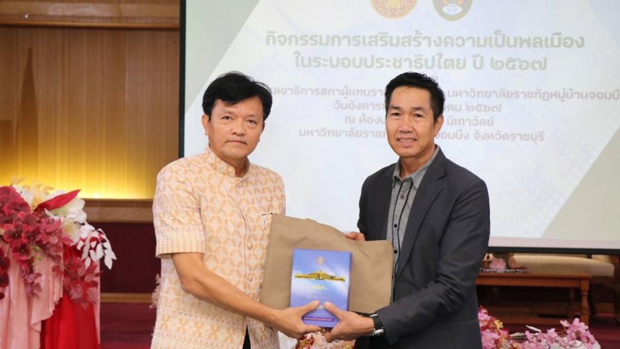 วันอังคารที่ 16 กรกฎาคม 2567 เวลา 08.30 นาฬิกา ณ ห้องประชุมสุพจน์ มิเถาวัลย์ มหาวิทยาลัยราชภัฏหมู่บ้านจอมบึง จังหวัดราชบุรี นายกุลพล วัชรกาฬ ผู้อำนวยการสำนักกฎหมาย เป็นประธานเปิดกิจกรรมการเสริมสร้างความเป็นพลเมืองในระบอบประชาธิปไตย ประจำปี 2567 โดยมี ผศ.ดร.ชัยฤทธิ์ ศิลาเดช อธิการบดีมหาวิทยาลัยราชภัฎหมู่บ้านจอมบึง กล่าวต้อนรับ และน.ส.มันทนา ศรีเพ็ญประภา ผู้บังคับบัญชากลุ่มงานเผยแพร่ฯ กล่าวรายงาน