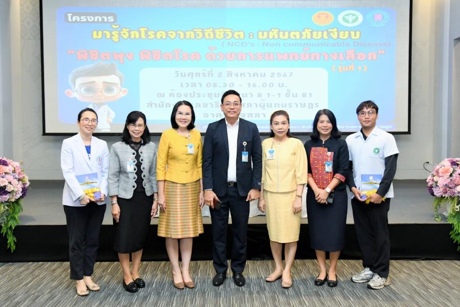 วันศุกร์ที่ 2 สิงหาคม 2567 เวลา 08.45 นาฬิกา ณ ห้องประชุมสัมมนา B1 - 1 ชั้น B1 อาคารรัฐสภา น.ส.กัลยรัชต์ ขาวสำอางค์ รองเลขาธิการสภาผู้แทนราษฎร เป็นประธานในพิธีเปิดโครงการมารู้จักโรคจากวิถีชีวิต : มหันตภัยเงียบ : NCDs Non Communicable Diseases) พิชิตพุง พิชิตโรค ด้วยการแพทย์ทางเลือก รุ่นที่ 1 โดยมี นางอัจฉรา จูยืนยง ผู้อำนวยการสำนักบริการทางการแพทย์ประจำรัฐสภา กล่าวรายงาน ในการนี้ นายสาธิต ประเสริฐศักดิ์ รองเลขาธิการสภาผู้แทนราษฎร ผู้บริหาร และบุคลากรสำนักงานเลขาธิการสภาผู้แทนราษฎร เข้าร่วม