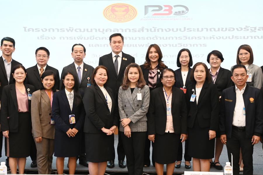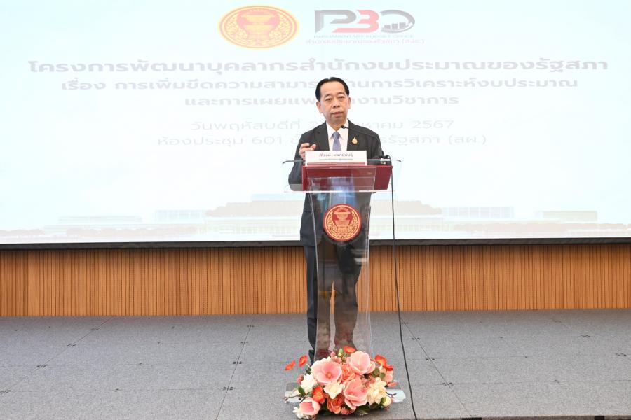 | วันพฤหัสบดีที่ 22 สิงหาคม 2567 เวลา 08.45 นาฬิกา ณ ห้องประชุมสัมมนา 601 ชั้น 6 อาคารรัฐสภา ว่าที่ร.ต.ต. อาพัทธ์ สุขะนันท์ เลขาธิการสภาผู้แทนราษฎร มอบหมายให้นายศิโรจน์ แพทย์พันธุ์ รองเลขาธิการสภาผู้แทนราษฎร เป็นประธานในพิธีเปิดโครงการพัฒนาบุคลากรสำนักงบประมาณของรัฐสภา เรื่อง การเพิ่มขีดความสามารถด้านการวิเคราะห์งบประมาณและการเผยแพร่ผลงานวิชาการ โดยสำนักงบประมาณของรัฐสภา สำนักงานเลขาธิการสภาผู้แทนราษฎร โดยมี นายชูเกียรติ รักบำเหน็จ ผู้อำนวยการสำนักงบประมาณของรัฐสภา กล่าวรายงาน ทั้งนี้ ผู้บริหาร บุคลากร สำนักงานเลขาธิการสภาผู้แทนราษฎร ร่วมสัมมนา