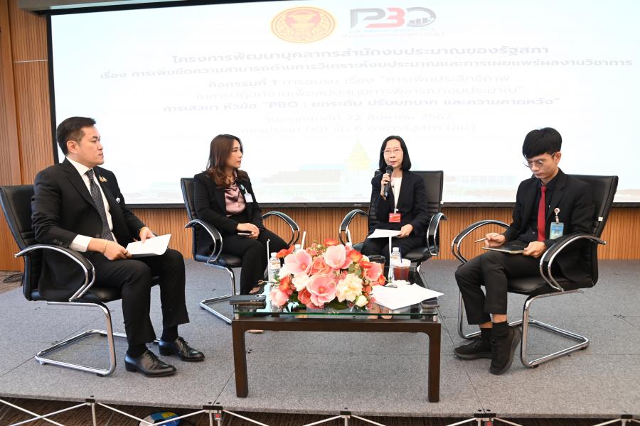 จากนั้น เป็นการสัมมนากิจกรรมที่ ๑ การอบรม เรื่อง "การเพิ่มประสิทธิภาพในการปฏิบัติงานเพื่อสนับสนุนการพิจารณางบประมาณ" การสัมมนาดังกล่าว จัดโดยสํานักงบประมาณของรัฐสภา มีวัตถุประสงค์เพื่อพัฒนางานของสํานักงบประมาณของรัฐสภา และพัฒนาบุคลากรให้มีความรู้และทักษะความสามารถในการปฏิบัติงานด้านการวิเคราะห์งบประมาณ เพื่อสนับสนุนการพิจารณางบประมาณของฝ่ายนิติบัญญัติให้มีประสิทธิภาพมากยิ่งขึ้น การสัมมนาดังกล่าวจัดขึ้นระหว่างวันที่ 22 - 23 และ 28 ส.ค.67 |