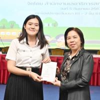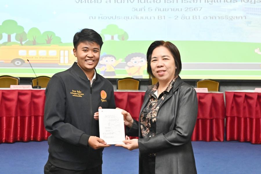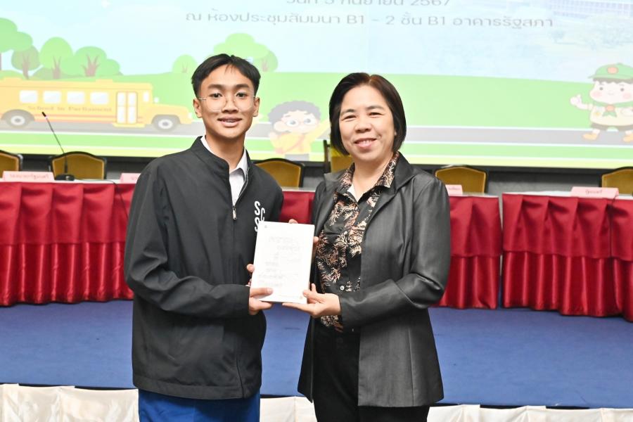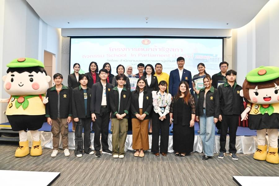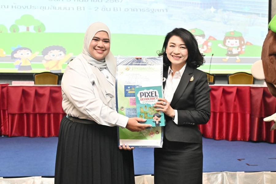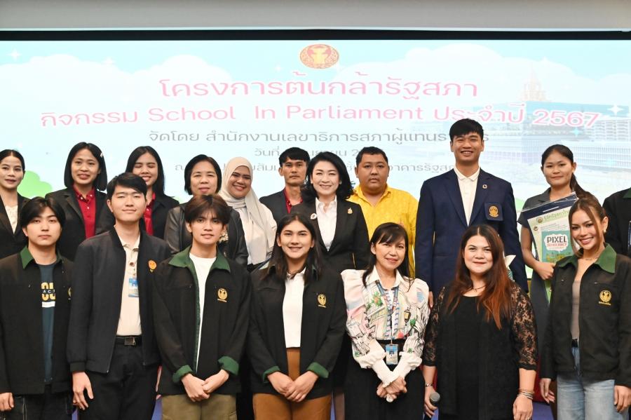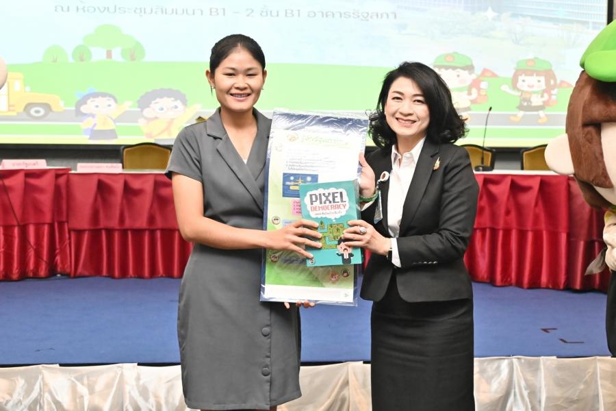 วันพฤหัสบดีที่ 5 กันยายน 2567 เวลา 09.30 นาฬิกา ณ ห้องจัดประชุมสัมมนา B1 - 2 ชั้น B1 อาคารรัฐสภา นางจงเดือน สุทธิรัตน์ รองเลขาธิการสภาผู้แทนราษฎร กล่าวต้อนรับผู้เข้าร่วมโครงการต้นกล้ารัฐสภา ประจำปี 2567 กิจกรรม School in Parliament พร้อมทั้งมอบสื่อความรู้และเกมประชาธิปไตยให้กับตัวแทนครู อาจารย์โรงเรียนที่เข้าร่วมกิจกรรม เพื่อนำไปใช้ขยายผลความรู้ด้านประชาธิปไตยให้กับนักเรียนในโรงเรียน และนางสาวมันทนา ศรีเพ็ญประภา ผู้บังคับบัญชากลุ่มงานเผยแพร่ประชาธิปไตยและกิจกรรมสภาผู้แทนราษฎร สำนักประชาสัมพันธ์ มอบหนังสือรวมเรื่องสั้นและบทกวีการเมืองรางวัลพานแว่นฟ้า เพื่อเป็นรางวัลให้แก่ผู้ที่ได้คะแนนการทดสอบ Pre-Test สูง