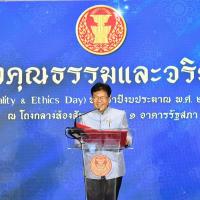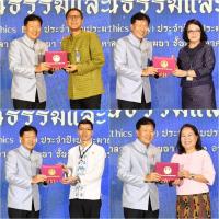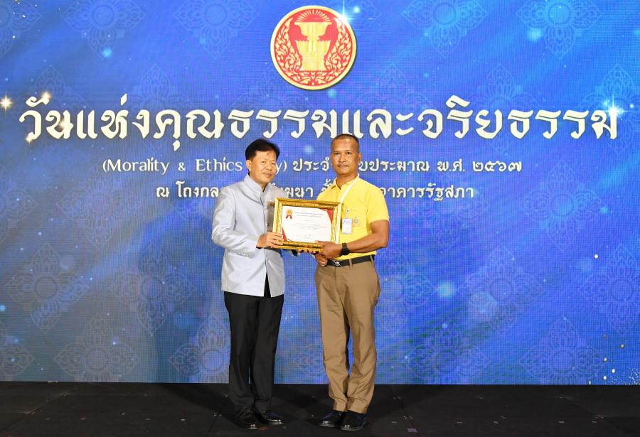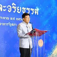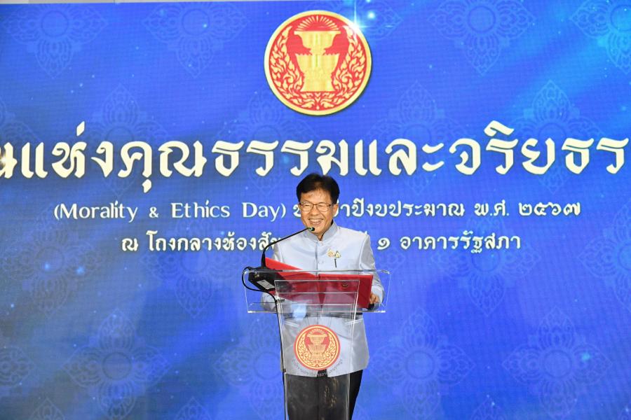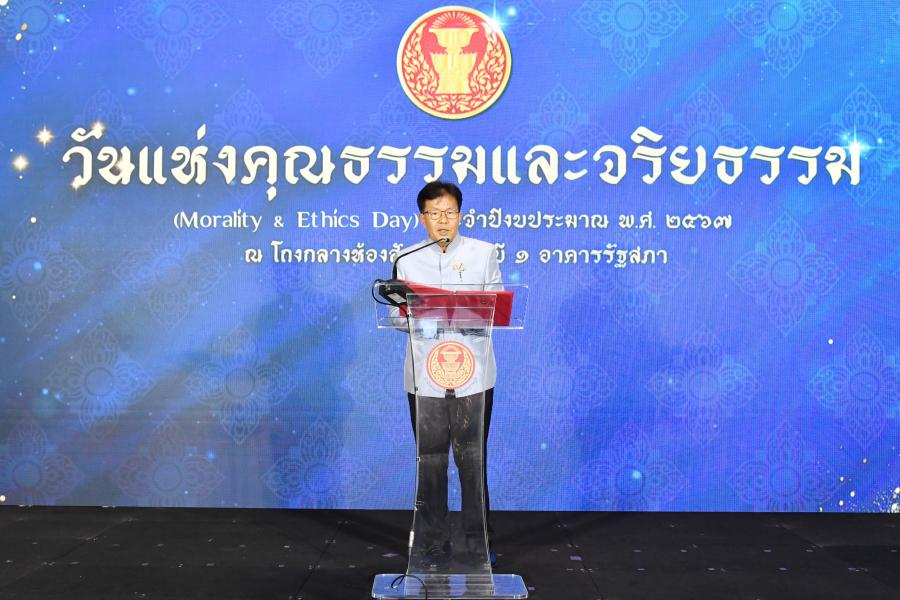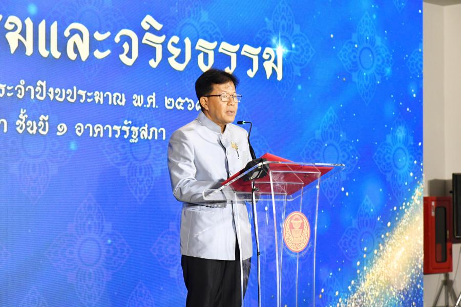 โอกาสนี้ ว่าที่ ร.ต.ต.อาพัทธ์ สุขะนันท์ เลขาธิการสภาผู้แทนราษฎร กล่าวเปิดและให้โอวาทใจความตอนหนึ่งว่า รู้สึกยินดีอย่างยิ่งที่ได้มาเป็นประธานในพิธีมอบเกียรติบัตรแก่ผู้ได้รับการรับรองคุณสมบัติเป็นผู้มีคุณธรรมและจริยธรรมดีเด่น และสำนักที่มีผลงานด้านการส่งเสริมตามประมวลจริยธรรมข้าราชการรัฐสภาและความโปร่งใส ที่มีผลคะแนนรวมร้อยละ 80 ขึ้นไป ประจำปีงบประมาณ พ.ศ. 2567 ซึ่งประมวลจริยธรรมข้าราชการรัฐสภา ได้กำหนดมาตรฐานทางคุณธรรมจริยธรรมของบุคลากรส่วนราชการสังกัดรัฐสภา เพื่อใช้เป็นแนวทางการประพฤติและปฏิบัติในการครองตน ครองคน และครองงาน สู่การเป็นข้าราชการที่ดีของส่วนราชการสังกัดรัฐสภาและของแผ่นดิน ซึ่งสำนักงานเลขาธิการสภาผู้แทนราษฎร ได้ทำการรณรงค์ เผยแพร่ ปลูกฝังคุณธรรมและจริยธรรมแก่บุคลากรในสังกัดอย่างสม่ำเสมอและต่อเนื่องตลอดมา จนเกิดเป็นผลสัมฤทธิ์เป็นองค์กรแห่งความดี โดยในปีที่ผ่านมา สำนักงานเลขาธิการสภาผู้แทนราษฎรได้รับรางวัลองค์กรคุณธรรมต้นแบบโดดเด่น 2 ปี ติดต่อกัน รวมทั้งหน่วยงานภายใน จำนวน 23 สำนัก ได้รับการยกย่องเป็นองค์กรคุณธรรมต้นแบบ 3 ปี ติดต่อกันเช่นกัน สำนักงานเลขาธิการสภาผู้แทนราษฎร ได้ดำเนินโครงการคัดเลือกบุคลากรและสำนักดีเด่น และจัดกิจกรรมยกย่องเชิดชูเกียรติมาโดยตลอด เพื่อสร้างขวัญและกำลังใจให้แก่บุคลากรและสำนักต่าง ๆ ที่มีความมุ่งมั่นตั้งใจในการขับเคลื่อนรณรงค์ส่งเสริมให้บุคลากรปฏิบัติตามประมวลจริยธรรมข้าราชการรัฐสภา นำมาตรฐานทางจริยธรรมของข้าราชการรัฐสภา ไปยึดถือและปฏิบัติอย่างจริงจังทั้งในหน้าที่ราชการ และ การดำเนินชีวิต มีพฤติกรรมเปลี่ยนแปลงไปในทางที่ดี ส่งผลให้เกิดความเจริญก้าวหน้าในหน้าที่การงาน และเกิดความผาสุกในองค์กร จึงสมควรส่งเสริม สนับสนุนให้มีกิจกรรมเช่นนี้ต่อไป โอกาสนี้ ขอชื่นชมยกย่องผู้ที่ได้รับการคัดเลือกเป็นข้าราชการรัฐสภาดีเด่นระดับสำนักและหน่วยงานขึ้นตรง จำนวน 57 คน สำนักที่มีผลงานด้านการส่งเสริมตามประมวลจริยธรรมข้าราชการรัฐสภาและความโปร่งใส ที่มีผลคะแนนรวมร้อยละ 80 ขึ้นไป ของสำนักงานเลขาธิการสภาผู้แทนราษฎร ประจำปีงบประมาณ พ.ศ. 2567 จำนวน 24 สำนัก บุคคลผู้ประพฤติตามประมวลจริยธรรมข้าราชการรัฐสภา จนเป็นที่ประจักษ์ จำนวน 2 คน และบุคลากรที่ได้รับรางวัลการประกวดบทความวิชาการด้านการป้องกันและปราบปรามการทุจริตของสำนักงาน ป.ป.ช. จำนวน 3 คน จึงขอให้ช่วยกันยึดมั่นดำรงรักษาและประพฤติปฏิบัติตน พัฒนาตน พัฒนาสำนักเพื่อเป็นแบบอย่างท