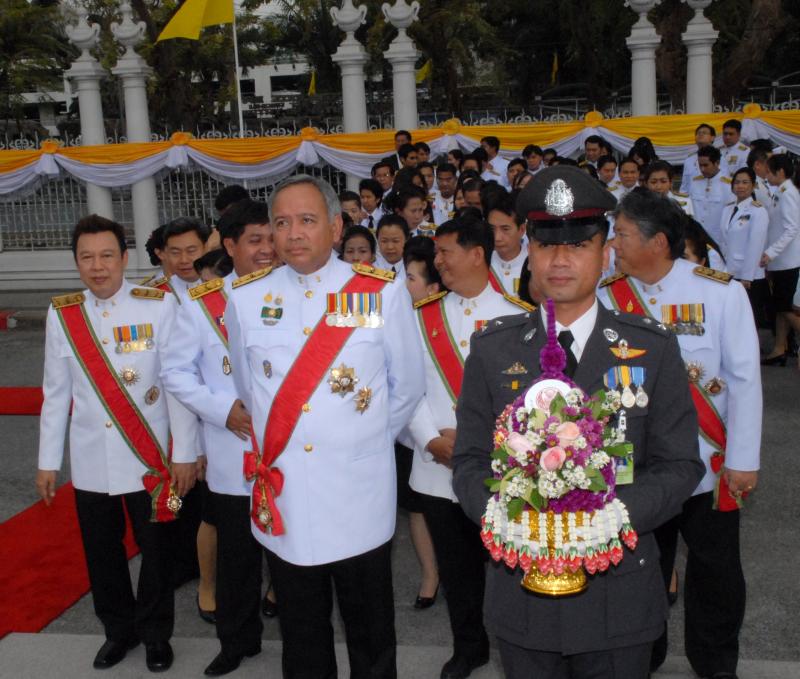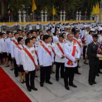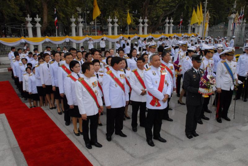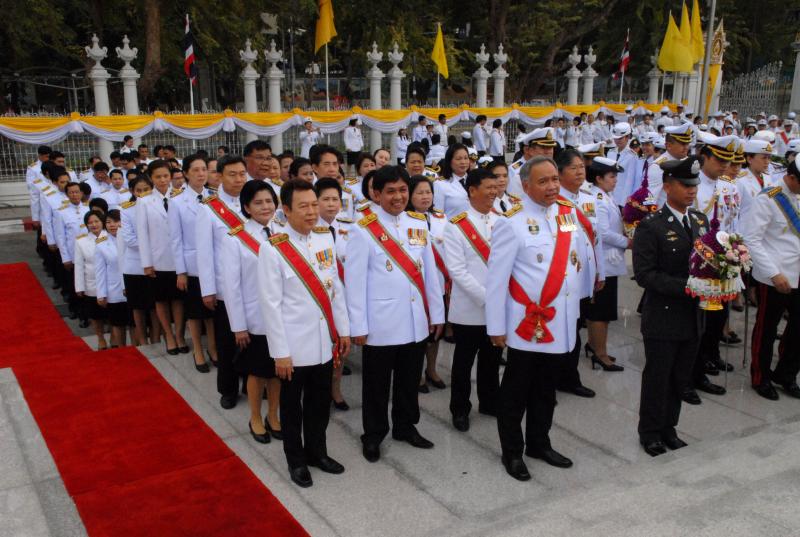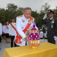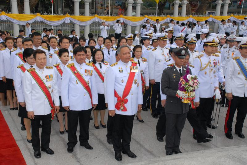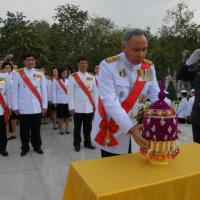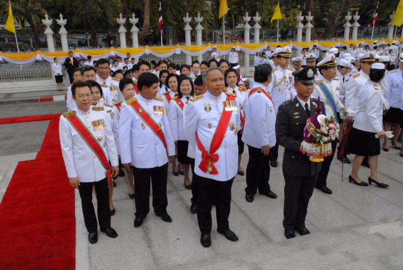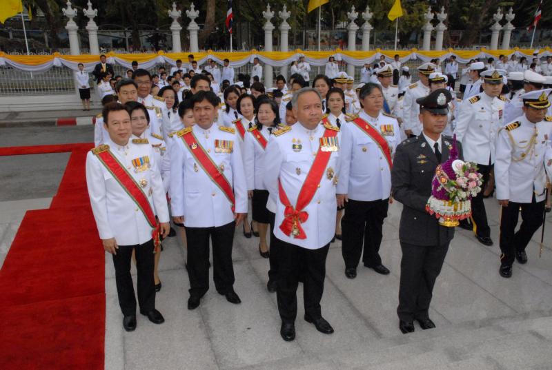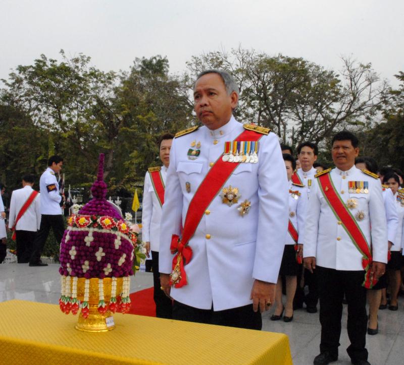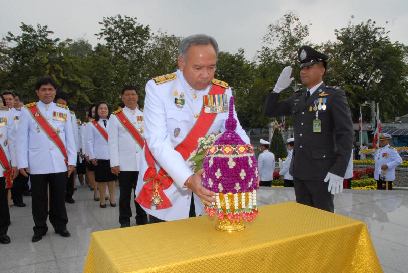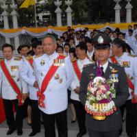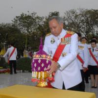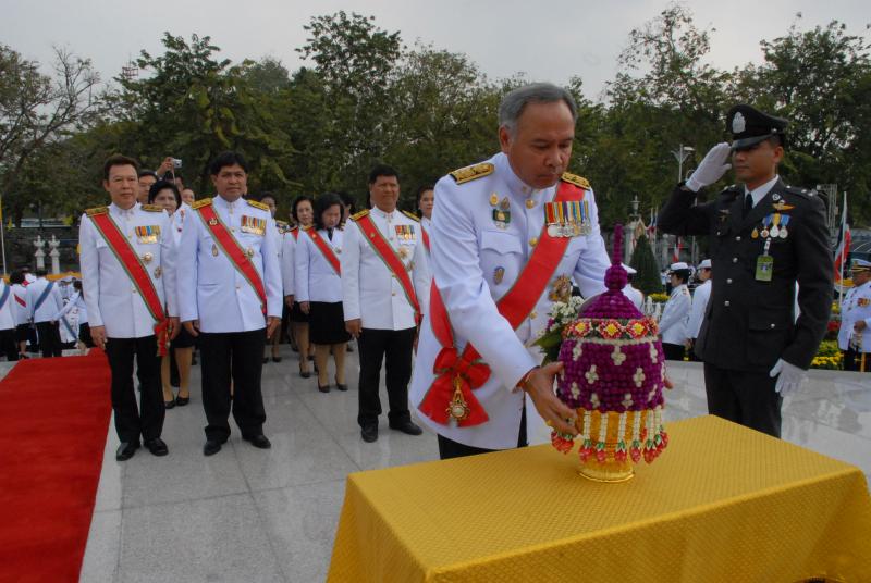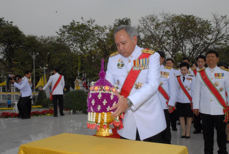 วางพานประดับพุ่มดอกไม้ถวายบังคมพระบรมราชานุสาวรีย์พระบาทสมเด็จพระปกเกล้าเจ้าอยู่หัว