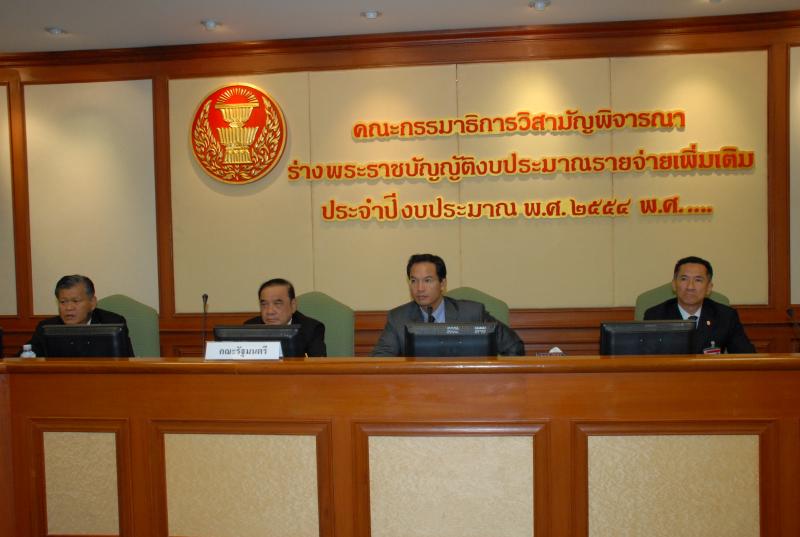 วันพฤหัสบดีที่ ๑๗ กุมภาพันธ์ ๒๕๕๔ เวลา ๑๓.๐๐ นาฬิกา ณ ห้องประชุมงบประมาณ ชั้น ๓ อาคารรัฐสภา ๓ นายกรณ์  จาติกวณิช  ประธานคณะกรรมาธิการวิสามัญพิจารณาร่างพระราชบัญญัติงบประมาณรายจ่ายเพิ่มเติมประจำปีงบประมาณ พ.ศ. ๒๕๕๔ พ.ศ. ... เป็นประธานในการประชุมคณะกรรมาธิการวิสามัญฯ  ครั้งที่ ๑