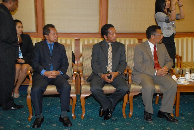วันพุธที่ ๒๑ ธันวาคม ๒๕๕๔ เวลา ๑๐.๔๕ นาฬิกา ณ ห้องรับรอง ๒ ชั้น ๒ อาคารรัฐสภา ๑ นายพีรพันธุ์  พาลุสุข ในฐานะรองประธานคณะกรรมาธิการการต่างประเทศ คนที่หนึ่ง ให้การรับรองคณะกรรมาธิการ B (ด้านความสัมพันธ์ระหว่างประเทศการป้องกันประเทศและความมั่นคงแห่งชาติ) รัฐสภาสาธารณรัฐประชาธิปไตยติมอร์-เลสเต เนื่องในโอกาสเดินทางมาศึกษาดูงานรัฐสภาไทย