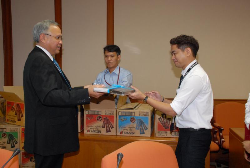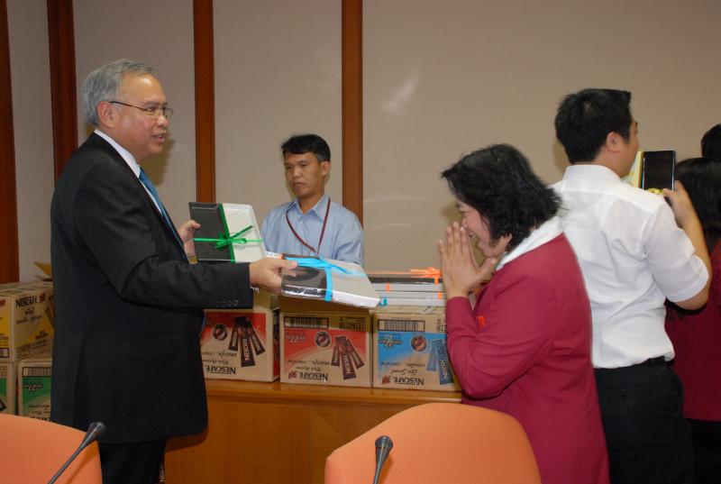เลขาธิาการสภาผู้แทนราษฎร รับกระเช้าของขวัญอวยพรปีใหม่จากสำนักการประชุมของสำนักงานเลขาธิการสภาผู้แทนราษฎร